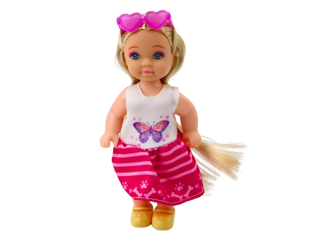 Mini panenka se psem a doplňky je okouzlující sada, která přenese děti do světa péče o domácí mazlíčky, hraní si s nimi a péče o ně. Obsahuje 12 cm vysokou panenku oblečenou v barevném oblečku: bílou halenku s potiskem motýlů, růžovou pruhovanou sukni s potiskem tlapek a žluté boty. Rozkošné růžové brýle ve tvaru srdce na hlavě panenky dodávají osobitý nádech.