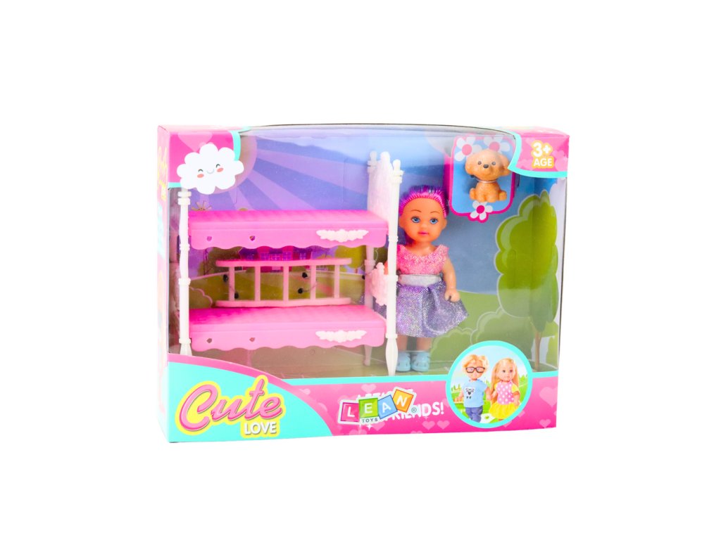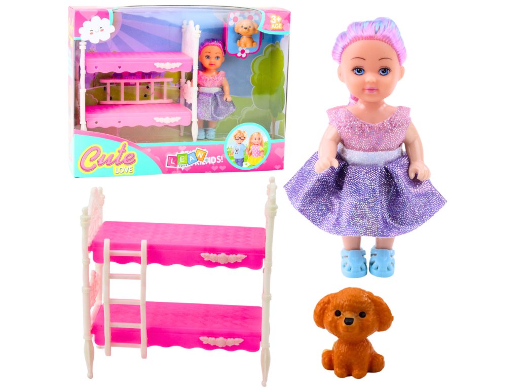 Panenka s patrovou postelí a pejskem je okouzlující herní set, který rozvíjí fantazii a poskytuje dětem mnoho příležitostí k tvořivé činnosti. Sada obsahuje 12 cm vysokou panenku oblečenou v lesklých barevných šatech, pěkného pejska a funkční patrovou postel s žebříkem - ideální pro hraní na domeček, péči o zvířátko a vytváření scén z každodenního života.