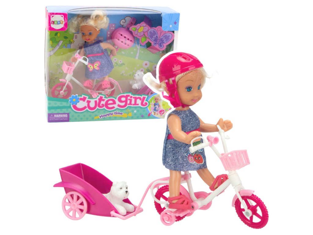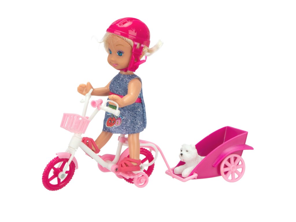 - Prvky sady: panenka, kolo, přívěs, pes, helma