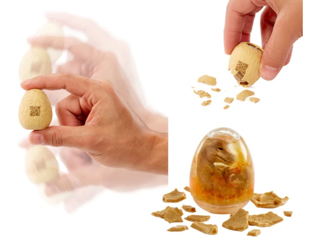 Každý míč je unikátním překvapením a obsahuje realistické mini doplňky – od nevylíhnutého vejce, malé kapátko, mini lžičku a různé předměty pro péči o vejce.