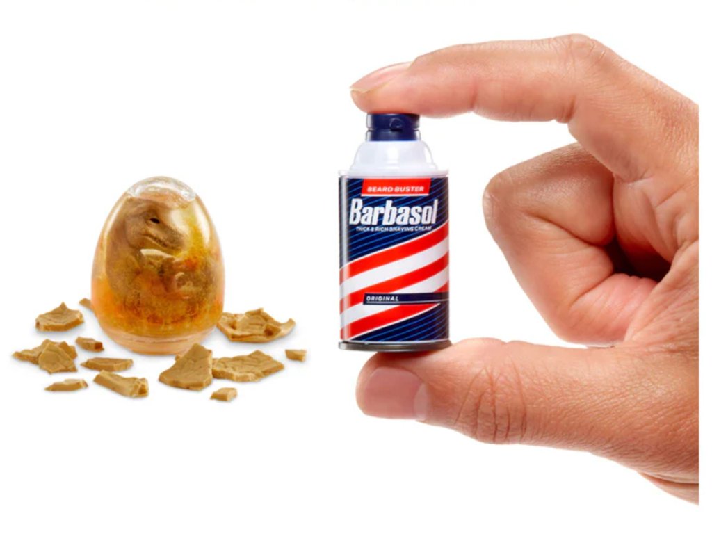 Děti si mohou vytvořit unikátní sběratelské mini dinosaury. Každý míč obsahuje pomůcky a nástroje potřebné k jeho vytvoření.
