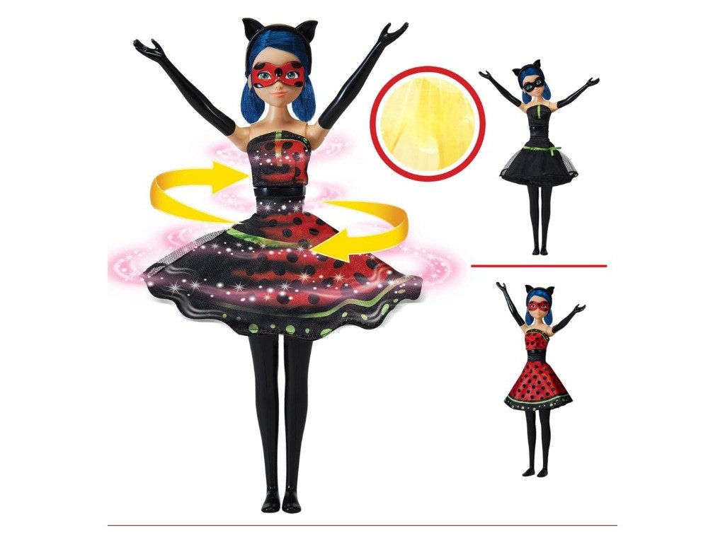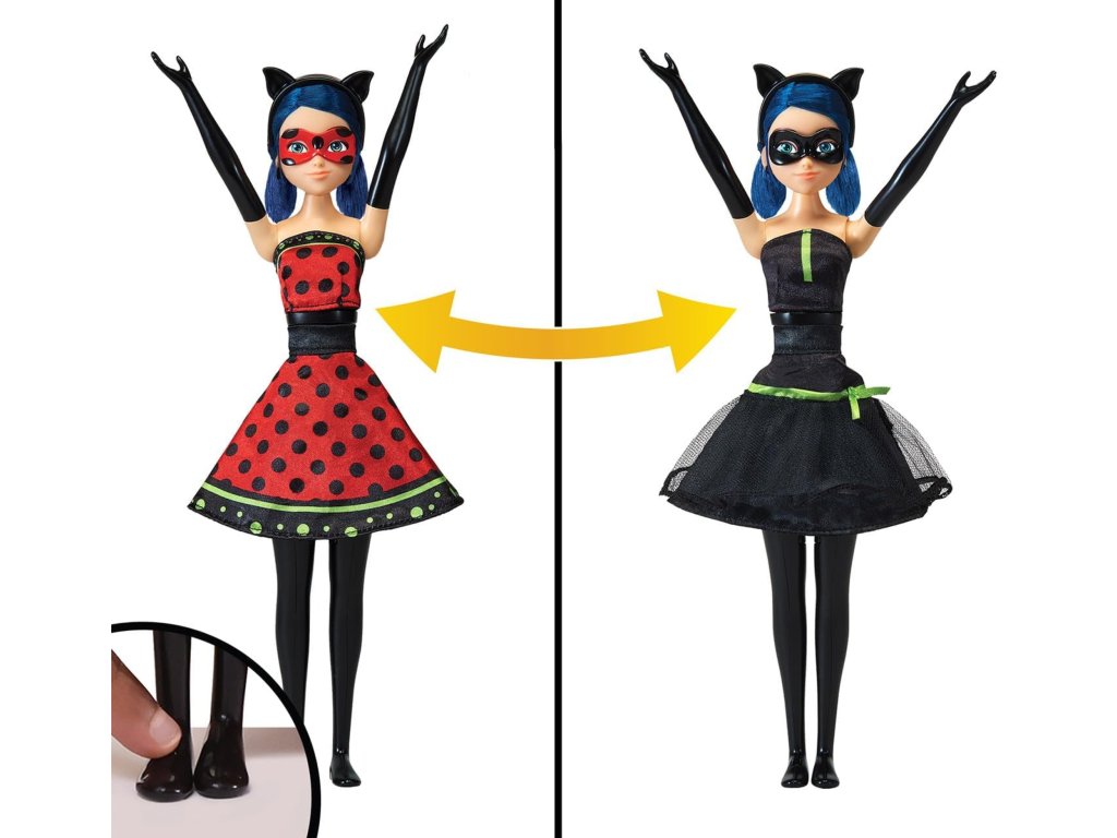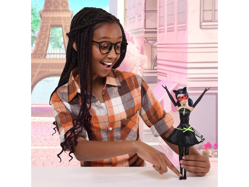 Panenka zobrazuje Marinette v jejím kostýmu Černé berušky , která se pomocí knoflíku na noze promění v Černou kočku . Věrně replikuje animovanou postavičku – má tmavě modré vlasy spletené do dvou copánků a tyrkysové oči. Sada také obsahuje: čelenku s kočičíma ušima a dvě masky – jednu pro každou postavu. Panenka je vysoká přibližně 26 cm a má kloubové body , takže ji můžete pózovat v různých dynamických pozicích .