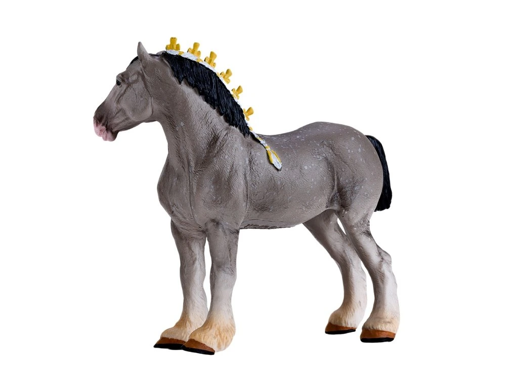 Shirští koně mezi chladnokrevníky, kteří mají velice klidný a vyrovnaný temperament, ale ve vypjatých situacích mohou být tvrdohlaví. Jsou vysocí v kohoutku 172 cm a více a váží až 1200 kg. Tato figurka zvířete napomáhá dětem poznávat skutečné vlastnosti, vzhled a charakter žijící předlohy. Hodnověrností a kvalitou zpracování snadno zaujme rovněž sběratele. Vyrábí se v nejvyšší kvalitě z PVC bez ftalátů a je ručně malovaná tak, aby každý detail odpovídal originálu. Podléhá přísnému testování v souladu s mezinárodními standardy. Je balena a dodávána v průhledném plastovém sáčku. Hlavní vlastnosti: ručně malovaná figurkavěrohodné detaily i zbarvenívyrobeno z PVC bez ftalátůopatřeno licencí respektovaných dokumentaristůnavrženo ve spolupráci s komunitou sběratelůextra velká velikostDoplňkové parametry