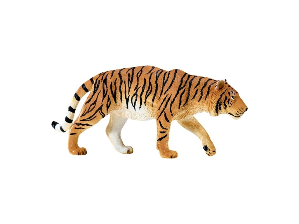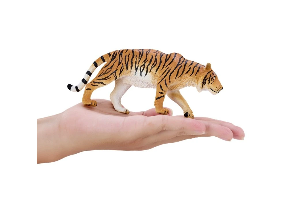 Tygr je největší z kočkovitých šelem, je to silný a svalnatý predátor, který loví hlavně velké savce, jako jsou jeleni a divoká prasata. Každý tygr má jedinečný vzor pruhů, který je podobný otiskům prstů. Tato figurka zvířete napomáhá dětem poznávat skutečné vlastnosti, vzhled a charakter žijící předlohy. Hodnověrností a kvalitou zpracování snadno zaujme rovněž sběratele. Vyrábí se v nejvyšší kvalitě z PVC bez ftalátů a je ručně malovaná tak, aby každý detail odpovídal originálu. Podléhá přísnému testování v souladu s mezinárodními standardy. Je balena a dodávána v průhledném plastovém sáčku. Hlavní vlastnosti: ručně malovaná figurkavěrohodné detaily i zbarvenívyrobeno z PVC bez ftalátůopatřeno licencí respektovaných dokumentaristůnavrženo ve spolupráci s komunitou sběratelůextra velká velikostDoplňkové parametry