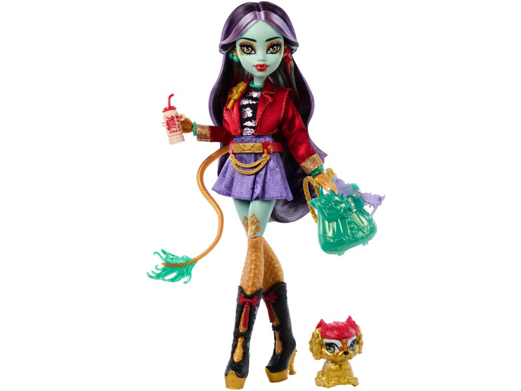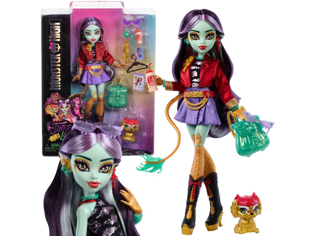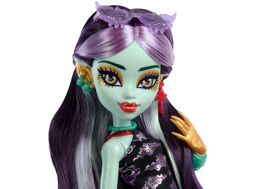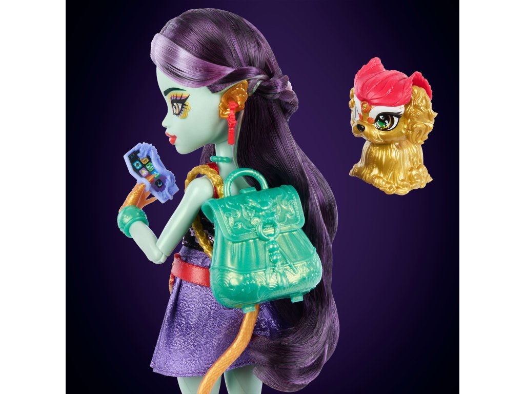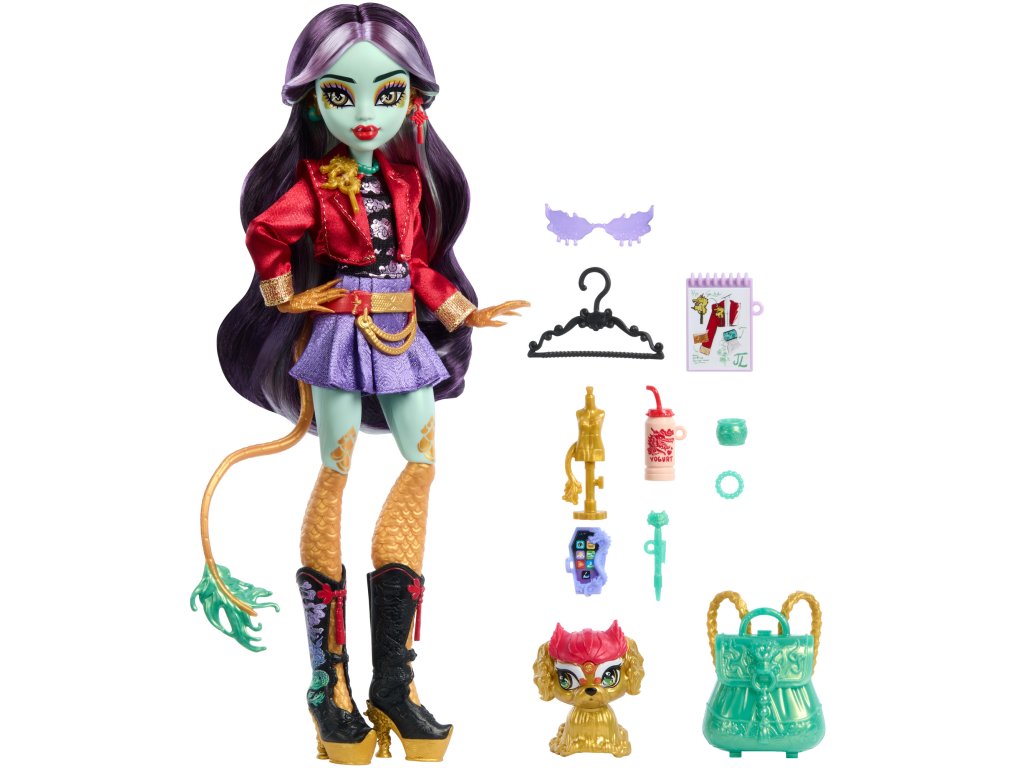 Monster High – Jinafire Long, velká panenka drak + mazlíček Cloudy (Yun Yun), 27 cm + doplňky