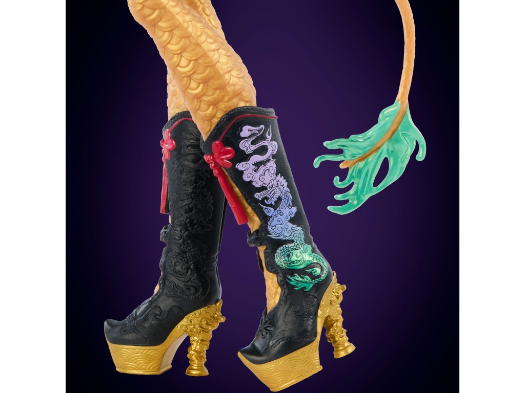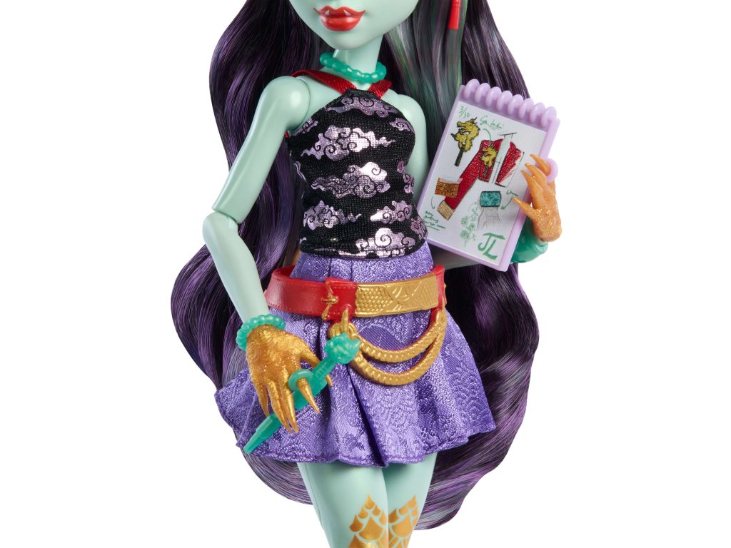 Představujeme dračího návrhářes divokým stylem!Jinafire Longje připravena na celý den dobrodružství na Scary Highse svým zvířecím přítelem, Cloudyho mazlíčkem "Yun Yun." Tato Panenka Monster Highpřišla do Straszycea v rámci zahraničního výměnného programu ze školy ve Fanghai.Toto je zasněnýčínský drak,který miluje navrhování oblečení.