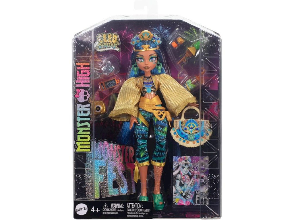 Módní panenka Monster High Monster Fest Cleo De Nile XHX81Zveme vás na Monster Fest – nejelektričtější hudební festival roku! Každá panenka Monster High vypadá fenomenálně v extrémně módním, originální styl. Módní panenky s doplňky, jako je kabelka, plakát kapely a "svačiny" se nemohou dočkat celé noci zábava s tancem a spoustou fotek. Panenky Monster Fest jsou perfektní dárek pro děti od 4 let.
