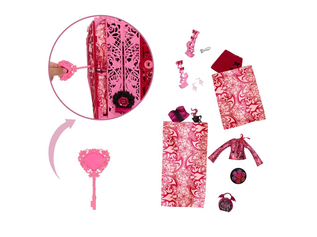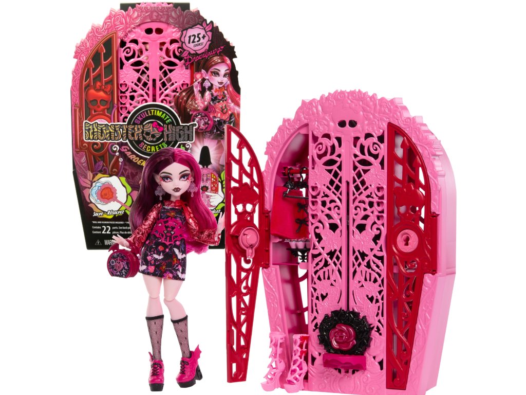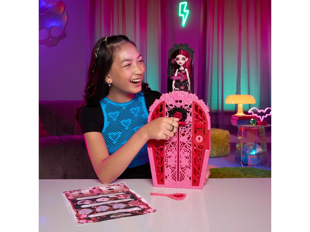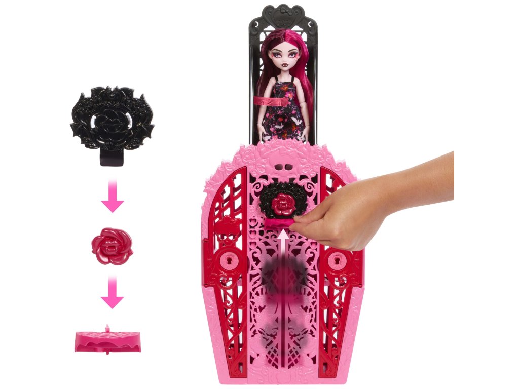 - Draculaura panenka je umístěna v uzamykatelné uzamykatelné skrýši s motivem Monster High.