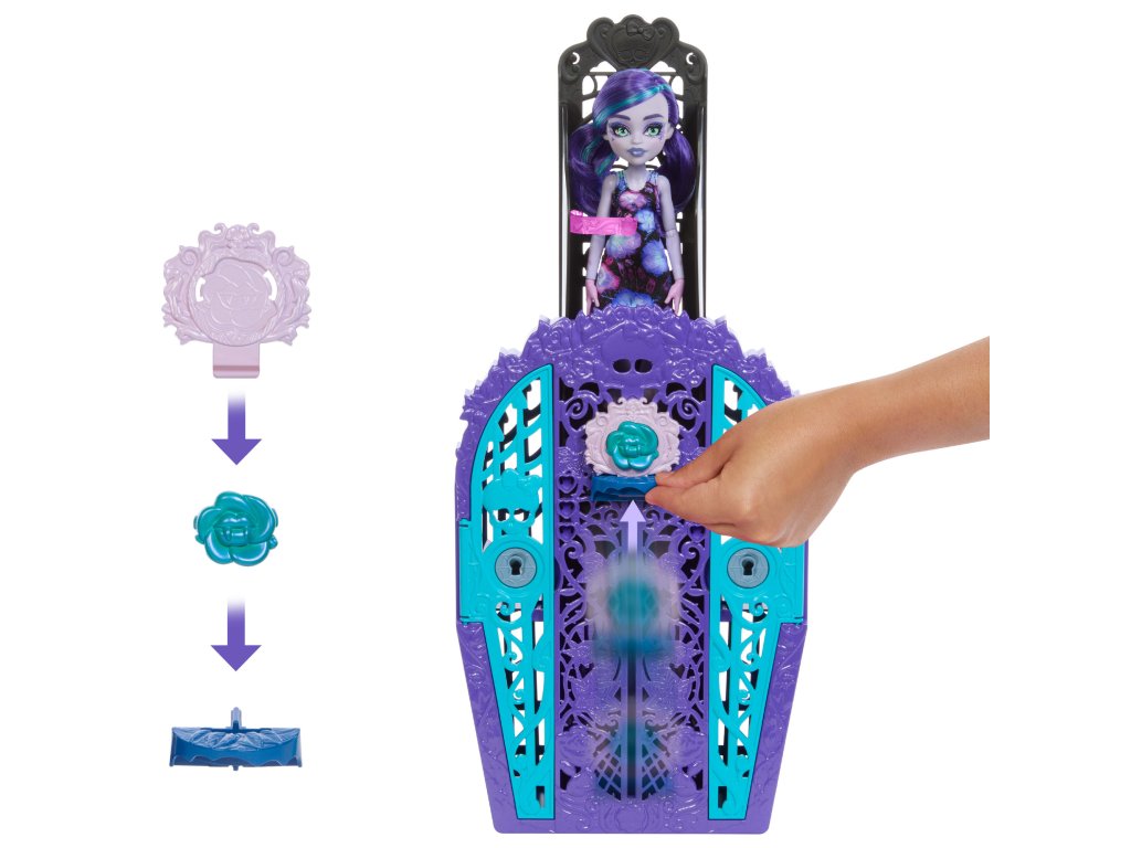 - Panenka je umístěna v uzamykatelné skrýši s motivem Monster High.