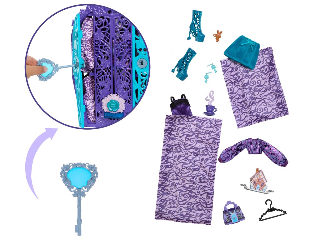 Po hře můžete svou panenku, oblečení a doplňky snadno uložit do designového šatníku – neobvyklý prvek dekorace a poklad všech příšer do pokoje.