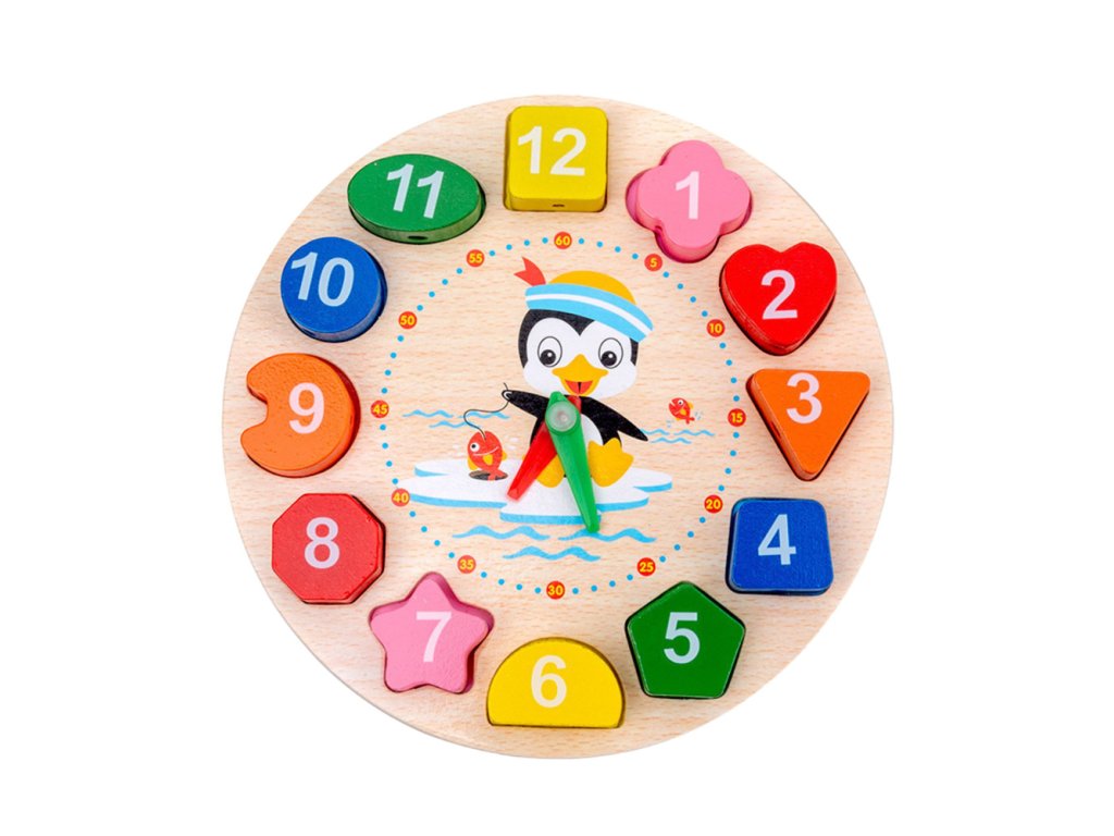Tyto barevné dřevěné kostkové hodiny jsou skvělou vzdělávací hračkou, která spojuje učení se zábavou. S 12 barevnými kostkami v různých tvarech se děti naučí přiřazovat, rozpoznávat čísla, barvy a základy určování času. Každý blok má jedinečný tvar a číslo – hodí se pouze na jedno místo na ciferníku.