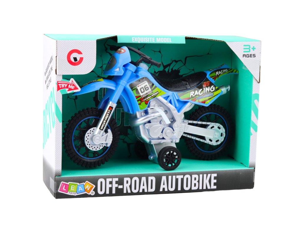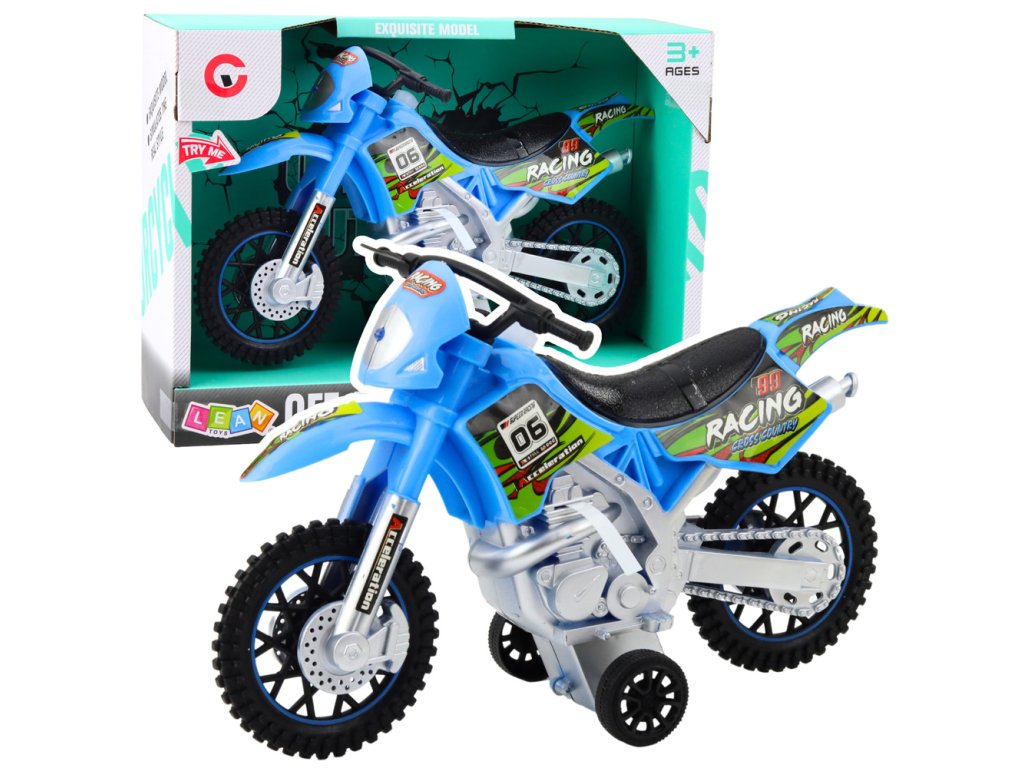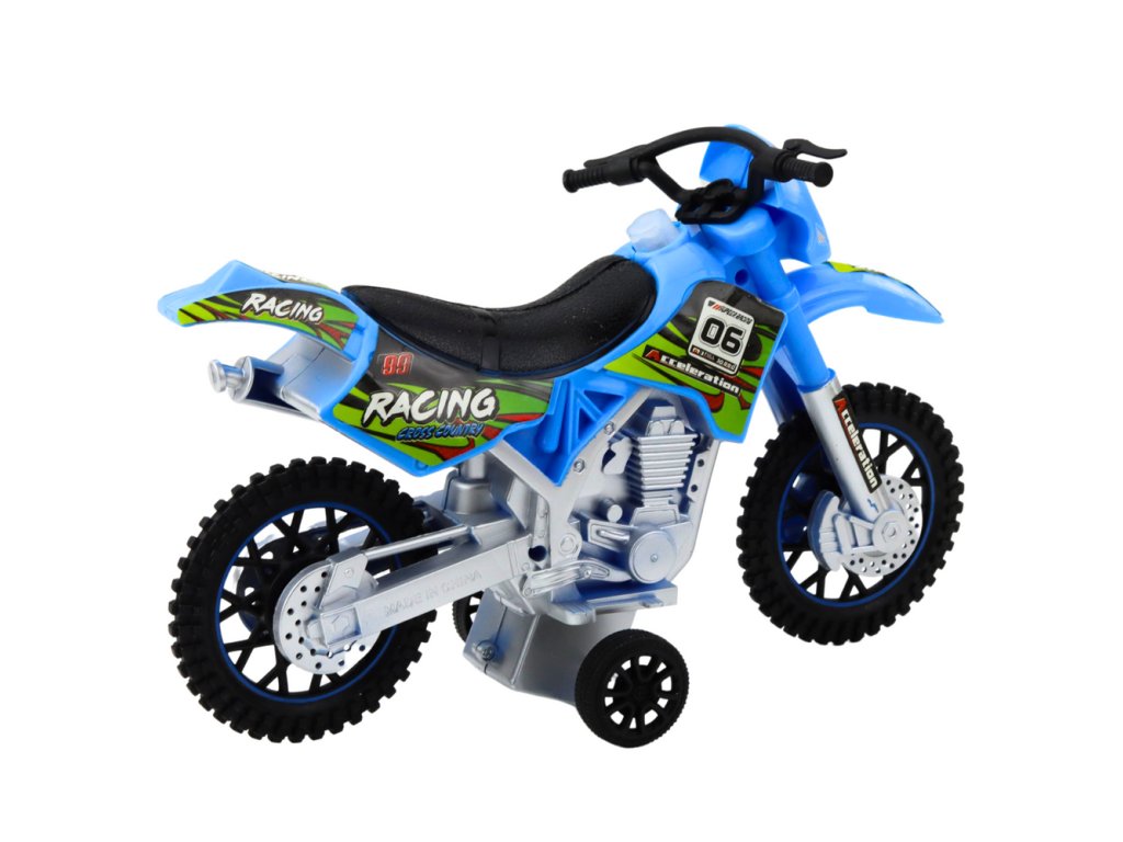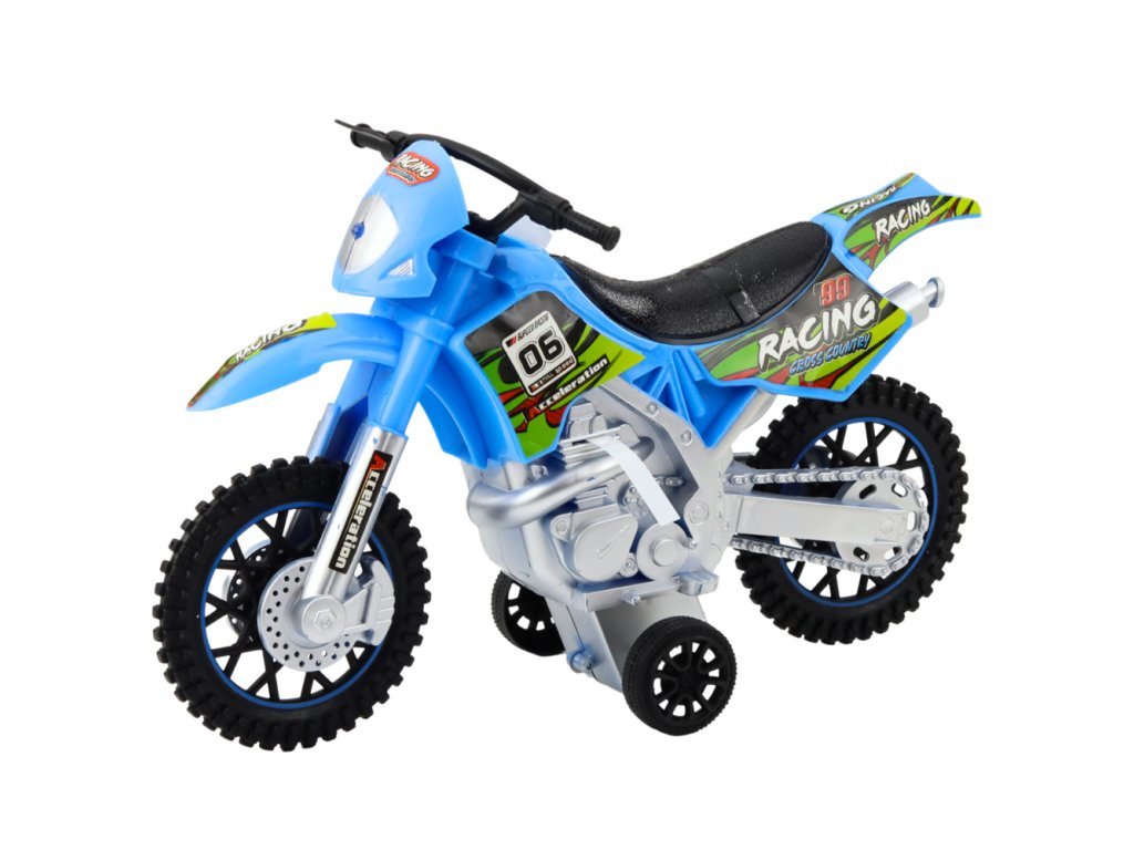 CROSS MOTOCYKL TERÉNNÍ HRAČKA MODRÁ SE SVĚTELNÝMI A ZVUKOVÝMI EFEKTY