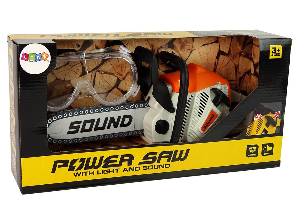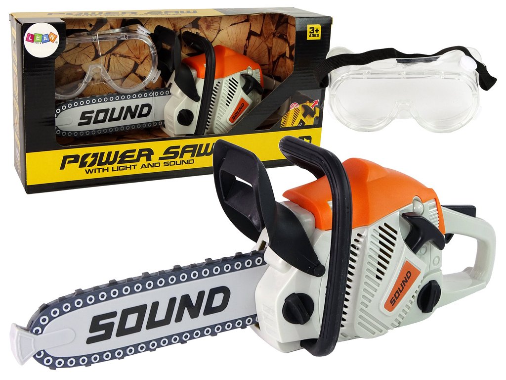 Motorová pila s pohyblivým řetězem + ochranné brýle Realistický vzhled a zvuky!