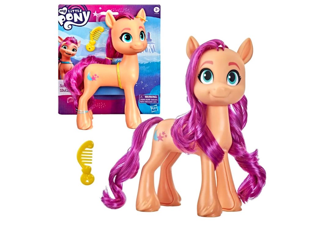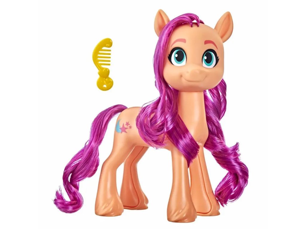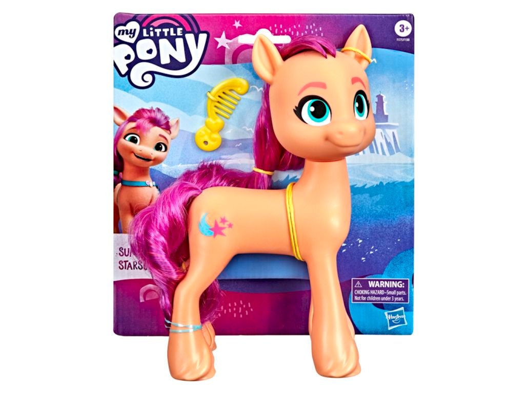 My Little Pony Sunny Starscout F1775Seznamte se se Sunny Starscout: an Earth poník z Maretime Bay! Sunny je zvědavá, dobrodružná a odhodlaná udělat svět lepším místem. Představte si, že Sunny vyráží na velké dobrodružství s touto figurkou inspirovanou filmem My Little Pony: The Next Generation. Tato sada obsahuje 22 cm figurku poníka Sunny, abyste si mohli představit velké filmové momenty. Fialový poník má dlouhé, měkké, růžové vlasy. Sada obsahuje hřeben na česání hřívy a ocasu.