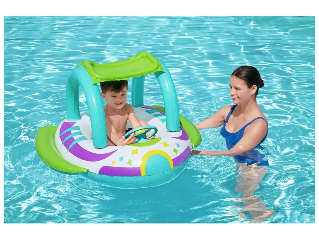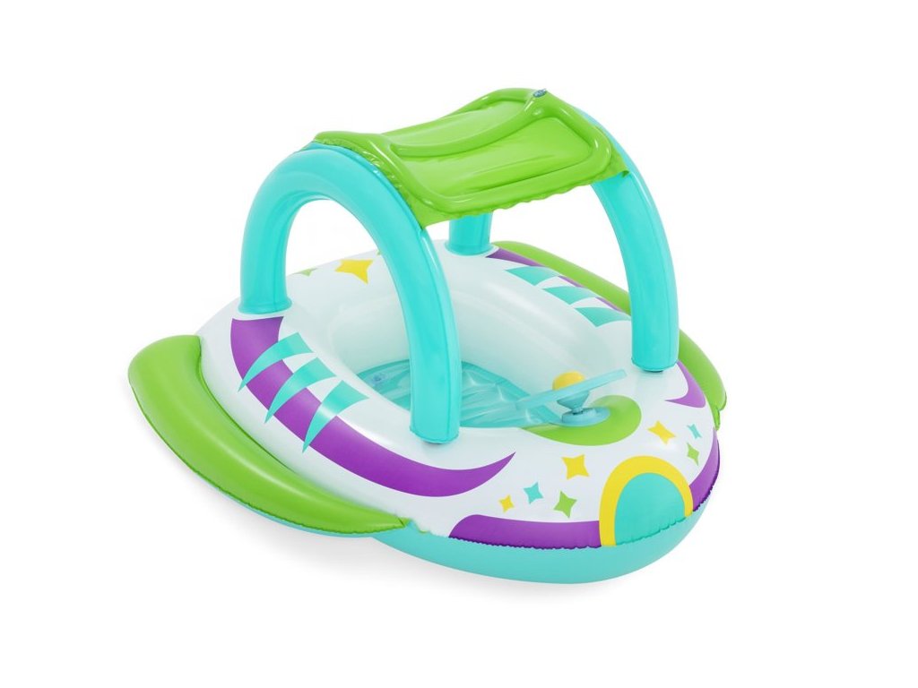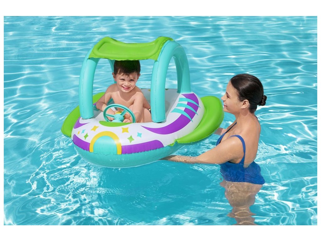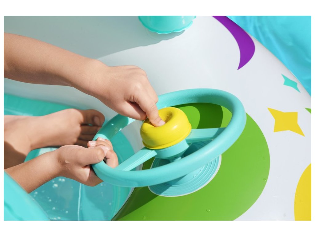 Pokud vaše dítě rádo tráví čas ve vodě, nebo si na vodu teprve zvyká, vybavte je plovákem. Ponton je lehký a šikovný, po složení nezabere moc místa, takže se dá snadno přenášet. Zajímavé barvy navíc povzbudí vaše dítě ke hrám ve vodě. Člun je určen pro děti od 3 let. Další výhodou je nafukovací dno a stříška, která zajistí, že se batole bude cítit pohodlně. Další atrakce poskytne vestavěný volant s klaksonem. Loď je vyrobena z odolného vinylu odolného proti poškození.