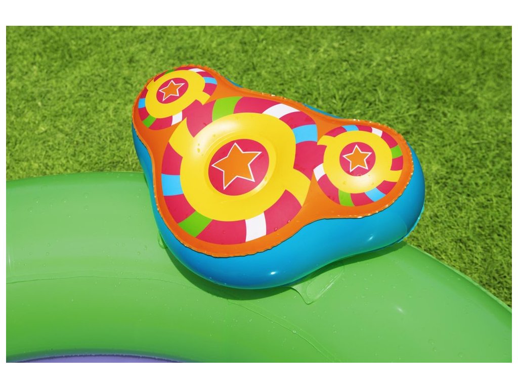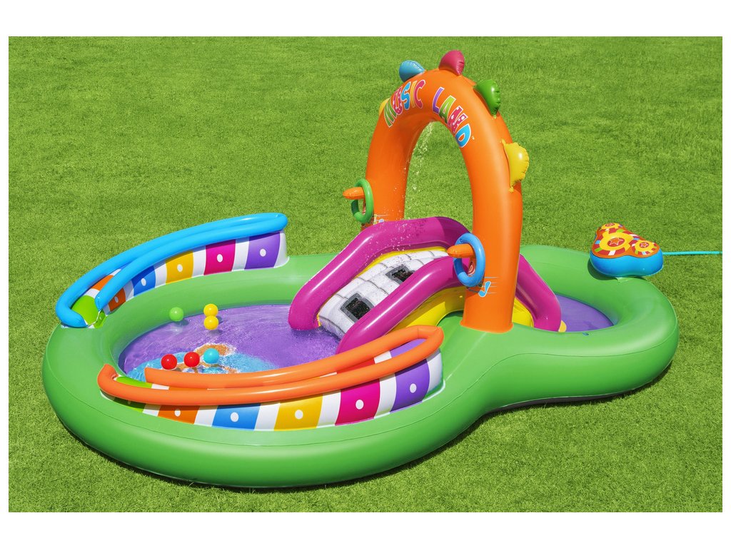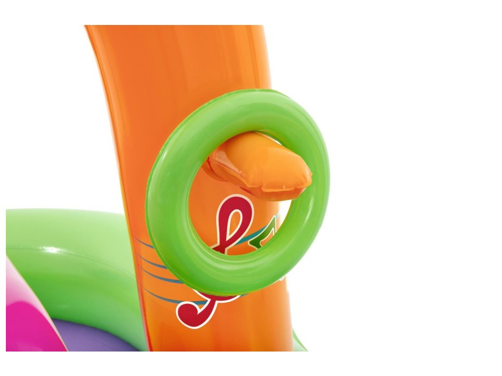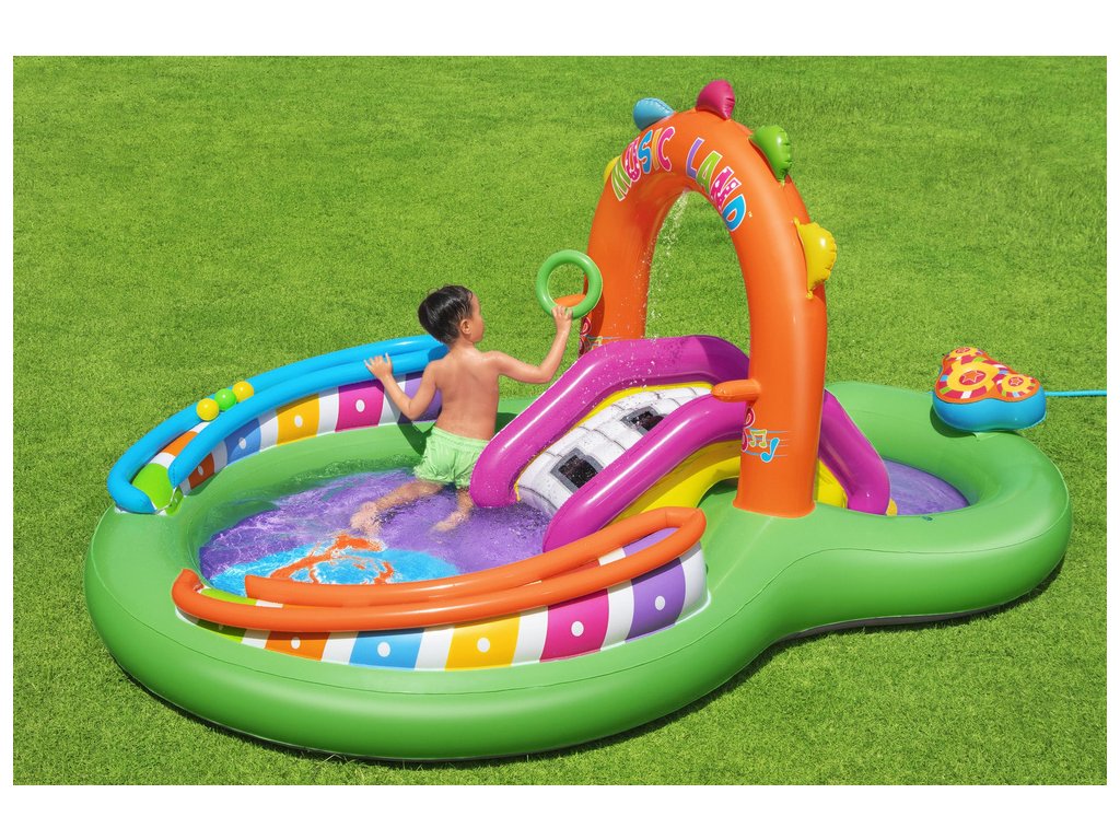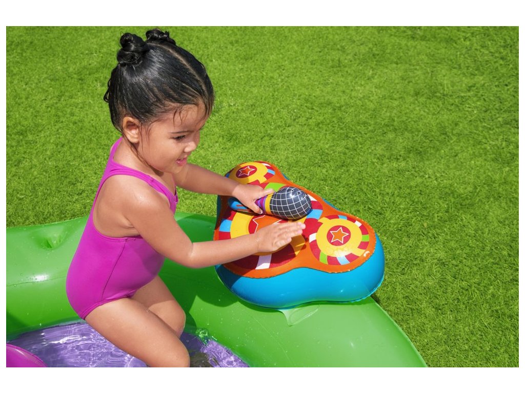 Rádi byste svému dítěti dopřáli nezapomenutelnou zábavu v soukromí vaší zahrady? Nafukovací hřiště z něj udělá skutečné centrum zábavy pro vaše dítě. Bazén s nafukovacími atrakcemi jako je nafukovací skluzavka, vodní fontána jistě potěší vašeho nejmenšího a stane se jeho oblíbeným místem na hraní. Bazén je vyroben z měkkého, ale odolného materiálu a je maximálně bezpečný pro nejmenší děti. Hlavní atrakcí je nafukovací skluzavka a oblouk, ze kterého po napojení na zahradní hadici poteče voda. Hřiště může využívat více dětí současně, díky četným atrakcím si každé z nich najde to své.