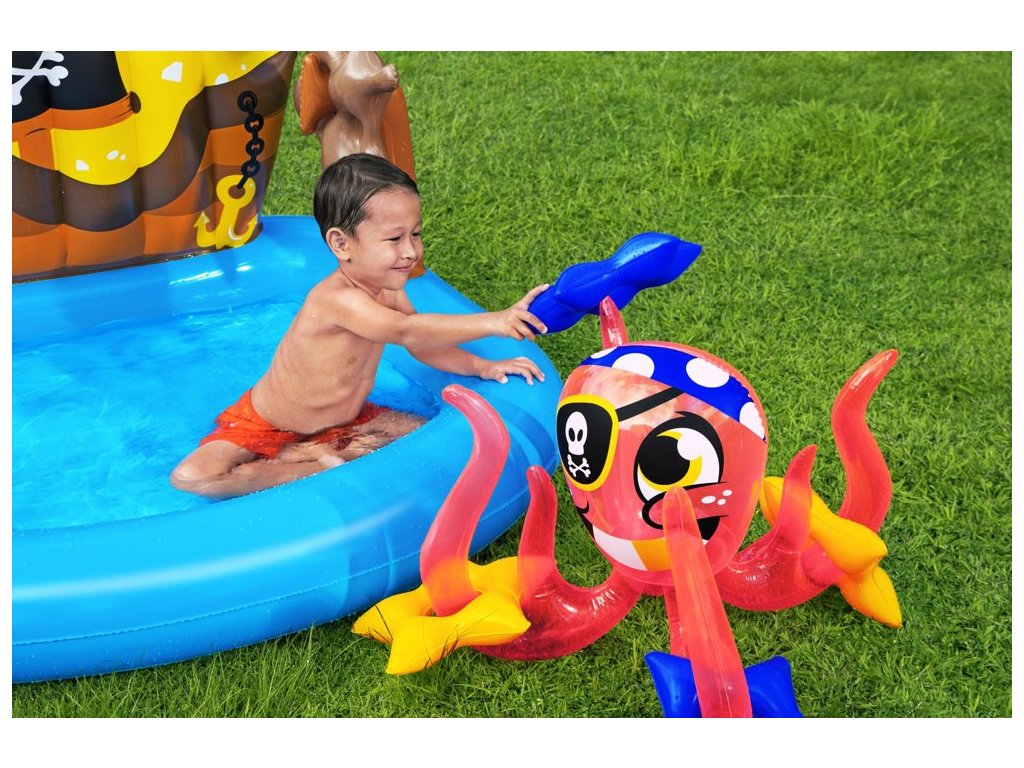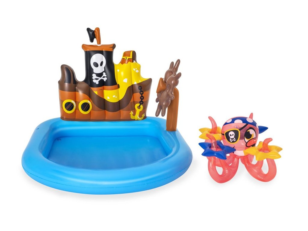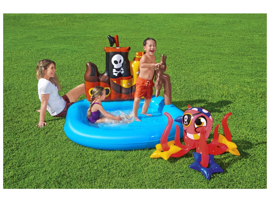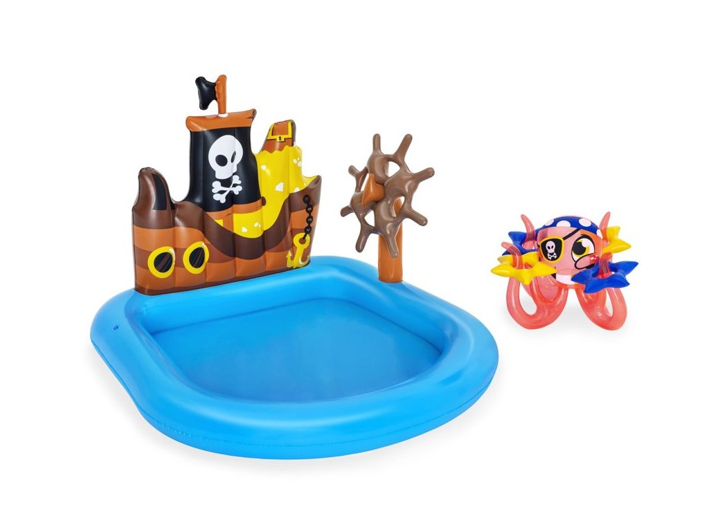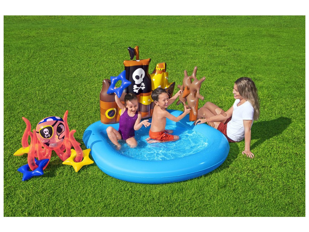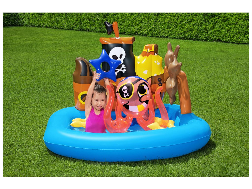 Rádi byste svému dítěti dopřáli nezapomenutelnou zábavu v soukromí vaší zahrady? Nafukovací hřiště z něj udělá skutečné centrum zábavy pro vaše dítě. Bazén s nafukovacími atrakcemi, jako je pohyblivé kormidlo, vrhací kruhy, jistě potěší vašeho nejmenšího a stane se jeho oblíbeným místem na hraní. Bazén je vyroben z měkkého, ale odolného materiálu a je maximálně bezpečný pro nejmenší děti.
