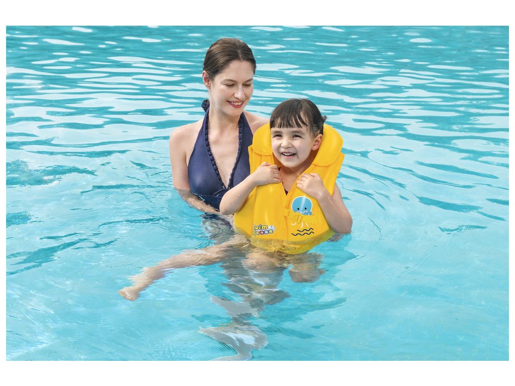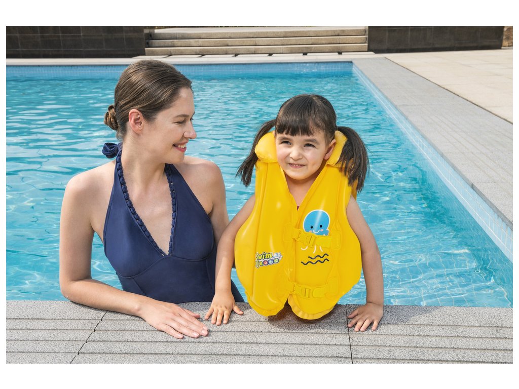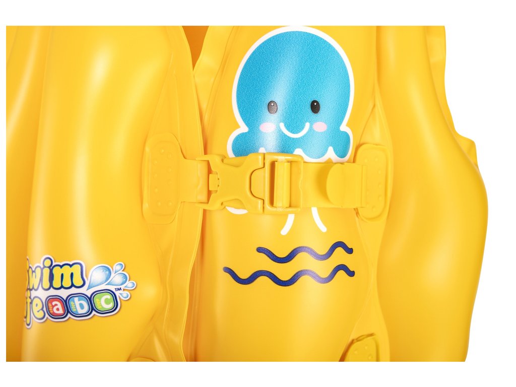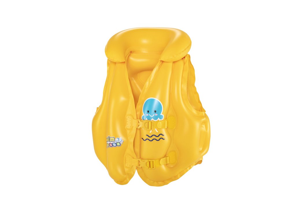 Nafukovací vesta je perfektním řešením pro děti, které se ve vodě ještě necítí sebevědomě, ale chtějí se naučit plavat. Díky vestě se budou moci ve vodě cítit bezpečně. Zapíná se na dvě přezky, aby z ní dítě nevypadlo a délka popruhu je nastavitelná a dokonale se přizpůsobí miminku. Je vyrobena z odolného PVC materiálu, který je odolný proti poškození.