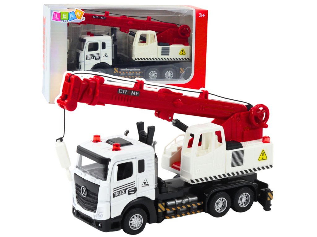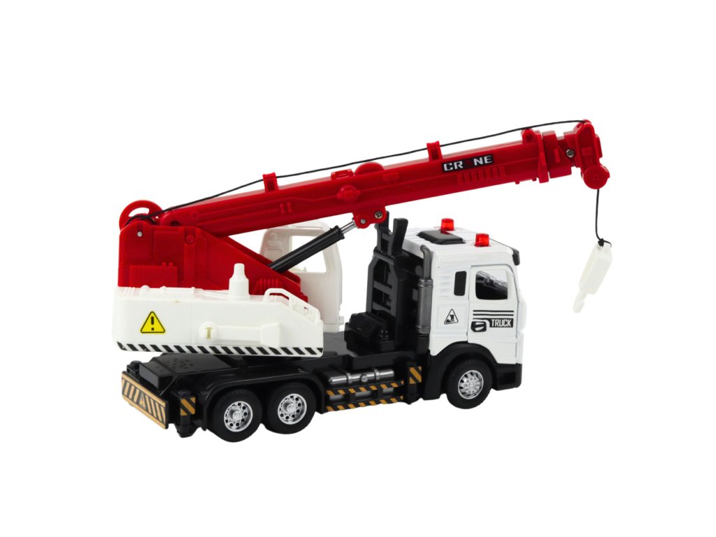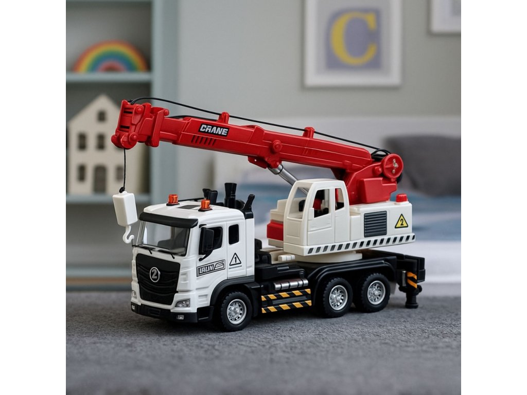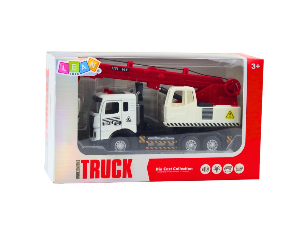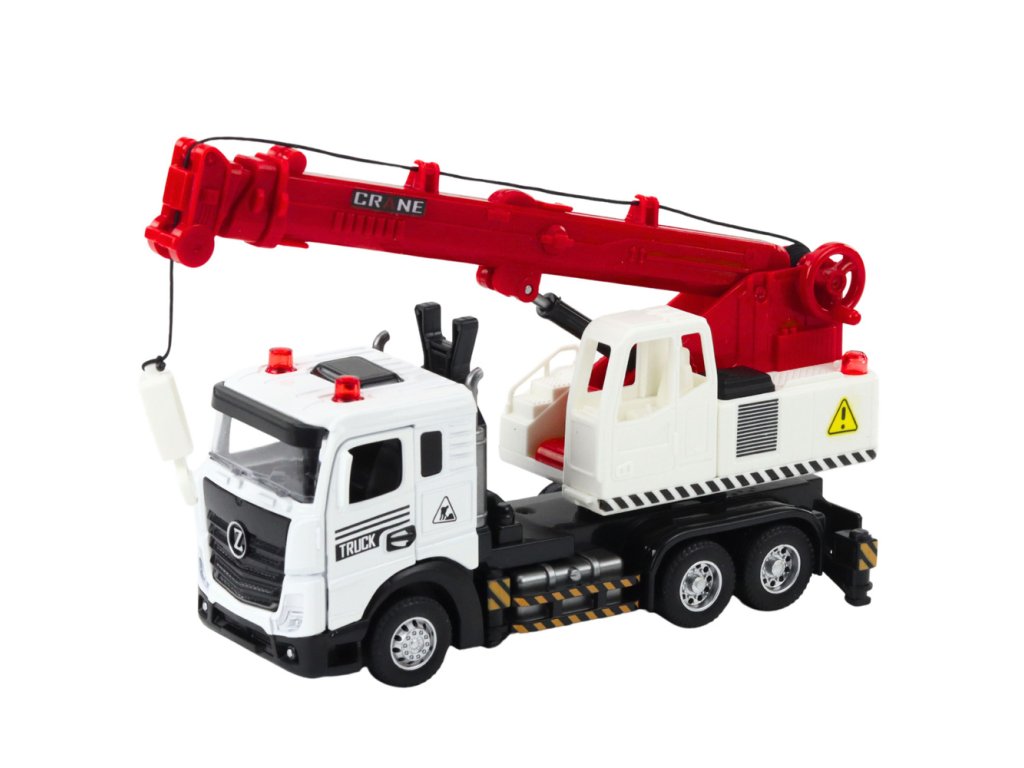 Náklaďák s jeřábem – kovová kabina, nastavitelné rameno, světla a zvuky