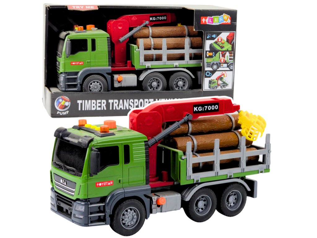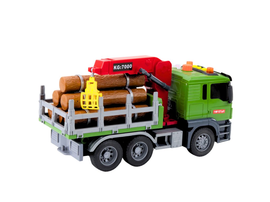 Úhledný a pevný vůz na přepravu dřeva je hračkou snů pro každého malého fanouška velkých strojů. Realistický styl, konstrukční detaily a funkční jeřáb způsobují, že se dítě cítí jako skutečný řidič speciálního vozidla. Model v měřítku 1:14 je vybaven pohyblivými prvky a interaktivními funkcemi, jako jsou světelné a zvukové efekty - zvuky couvání, signál alarmu, klakson a blikající výstražná světla.