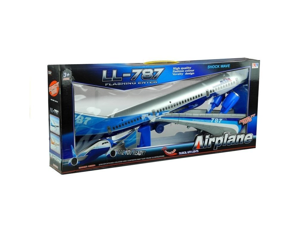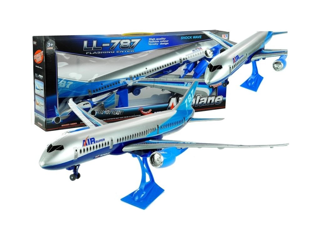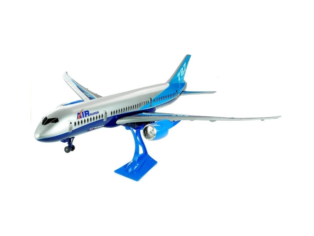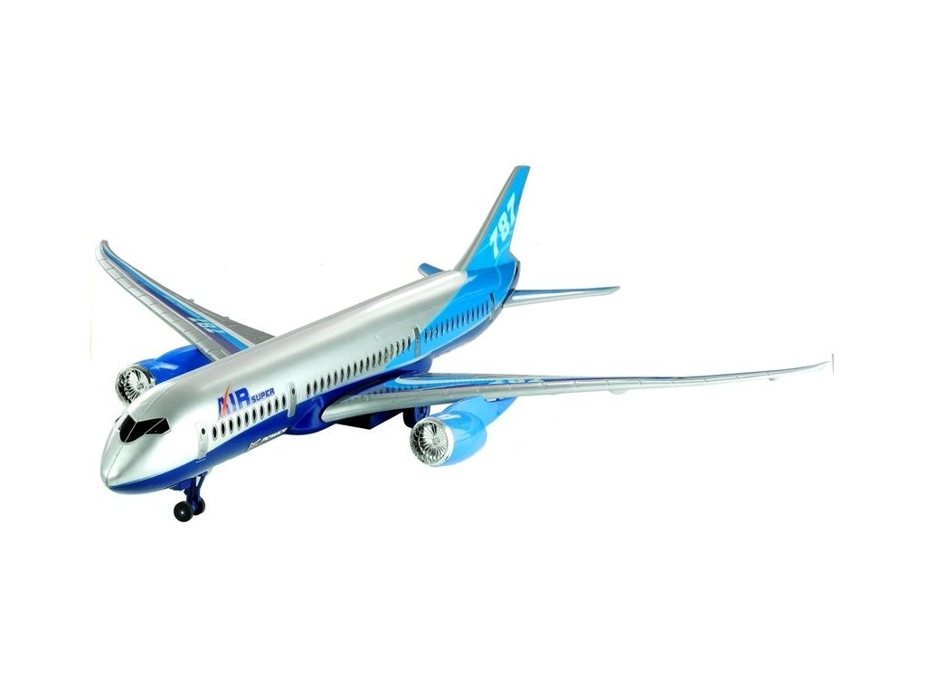 Představené letadlo se vyznačuje štíhlou, aerodynamickou konstrukcí a také zvukovými a světelnými efekty. Klasická, charakteristická a třpytivá šedá je spojena s různými odstíny modré - které jsou mimo jiné na ocasu letadla, také na motorech a velkých křídlech letadel. Detaily ve tvaru barevných pruhů a také nápisy "AIR SUPER" a rozlišení ''787" dělají letadlo jako skutečné, což stimuluje zrak dítěte. Letadlo je vyrobeno s důrazem na nejmenší detaily. Ve své konstrukci má také přední dveře na nádraží jako okna pro cestující - umožňují nahlédnout dovnitř hračky.Letadlo je kolové, na dvou párech kol - první, menší je složené, zatímco druhé má třecí pohon.Plastové kola mají ustupovou konstrukci, takže hra s tímto letadlem je velmi příjemná i na hrbolatém terénu.