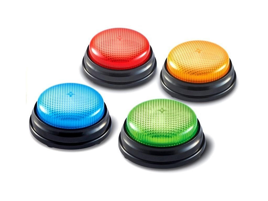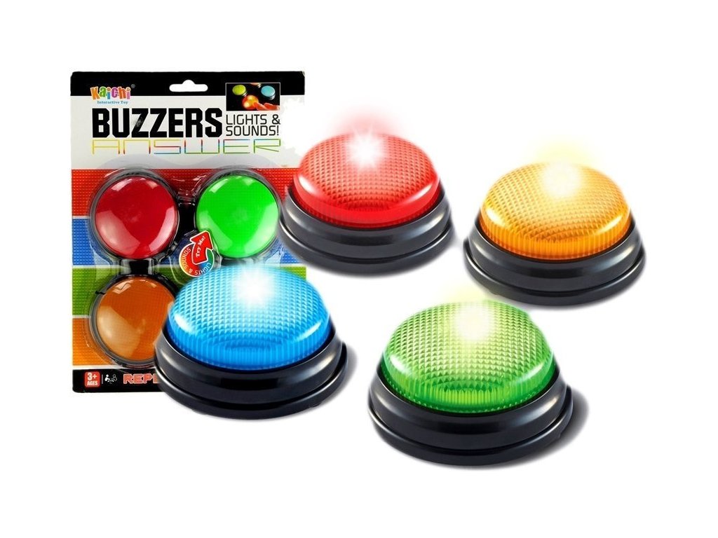 Každá varianta barvy má jiný zvuk , který se aktivuje po stisknutí světla. Během hry můžete slyšet například zvuky připomínající policejní sirénu, tajnou službu, triumf nebo špatnou odpověď. Jsme si jisti, že díky rozmanitosti barev a zvuků hračky ji každý využije mnoha způsoby. Jedinou hranicí je představivost - Bzučáky lze používat jak doma při hrách a hrách, tak ve škole, kde poslouží jako signalizační zařízení každému hráči. Tato sada bude perfektním řešením pro zlepšení úchopu ruky a reflexu dítěte, protože by mohla být použita ve hře, která se spoléhá na zapamatování si vytlačených barev a následné přehrání celé sekvence.