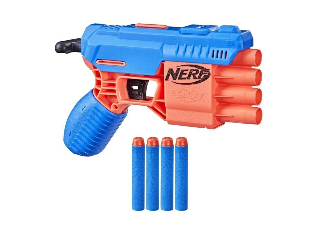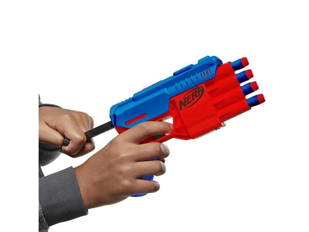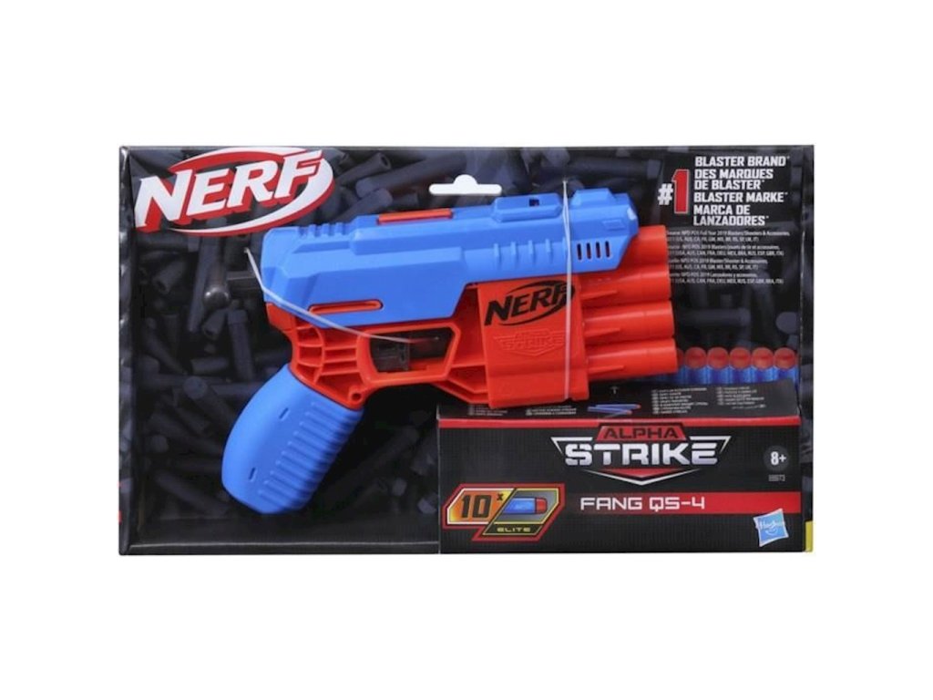 Nerf Alpha Strike Fang QS-4 E6973 modrýNerf Alpha Strike Fang QS-4 je perfektní launcher pro lidi, kteří začínají své dobrodružství s Nerfs. Zbraň má hlaveň pro čtyři šipky. Opětovné nabití odpalovacího zařízení – zatažením za zadní rukojeť a stisknutím spouště vypálíme jediný výstřel. Po každém opětovném nabití vypálíme další šipku. Odpalovač se snadno nabíjí, takže jej doporučujeme i pro mladší děti.