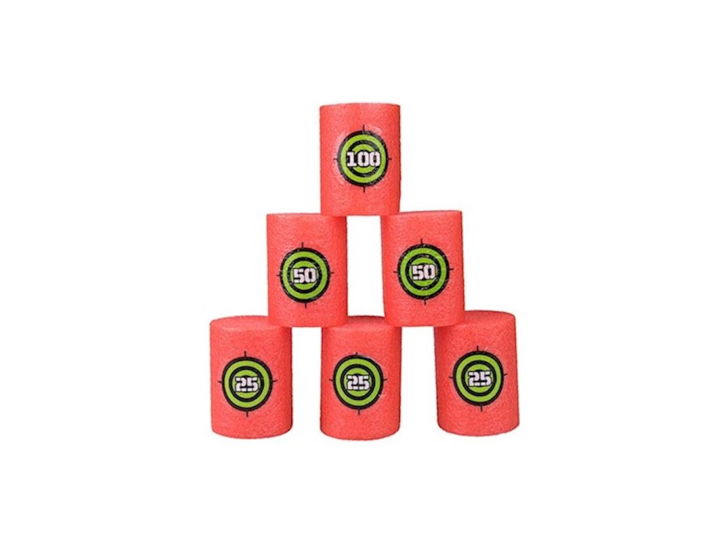 6 pěnových terčů umožňuje trénovat přesnost a soutěžit s přáteli.