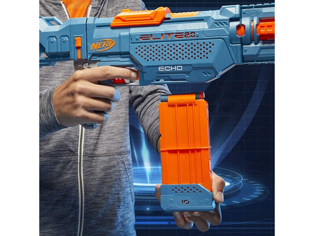 Echo je odpalovací zařízení s posuvným systémem, podobně jako Delta Trooper a Retaliator. Jedná se o multifunkční odpalovací zařízení, které lze přizpůsobit jakémukoli typu akce. Obrovskou výhodou tohoto launcheru je jeho modulární konstrukce, takže jeho úpravou můžeme vytvořit až 4 různé launchery! Pro lepší stabilitu při střelbě můžete namontovat pažbu nebo přidat hlaveň pro zvýšení přesnosti. Echo má 5 taktických lišt, 4 jsou v připojené hlavni a jedna v baňce.V závislosti na situaci můžete použít dvě možnosti střelby, pečlivou přesnou střelbu jednotlivými ranami nebo nepřetržitou střelbu a zasáhnout nepřítele krupobitím kulek.Funkce spouštěče: