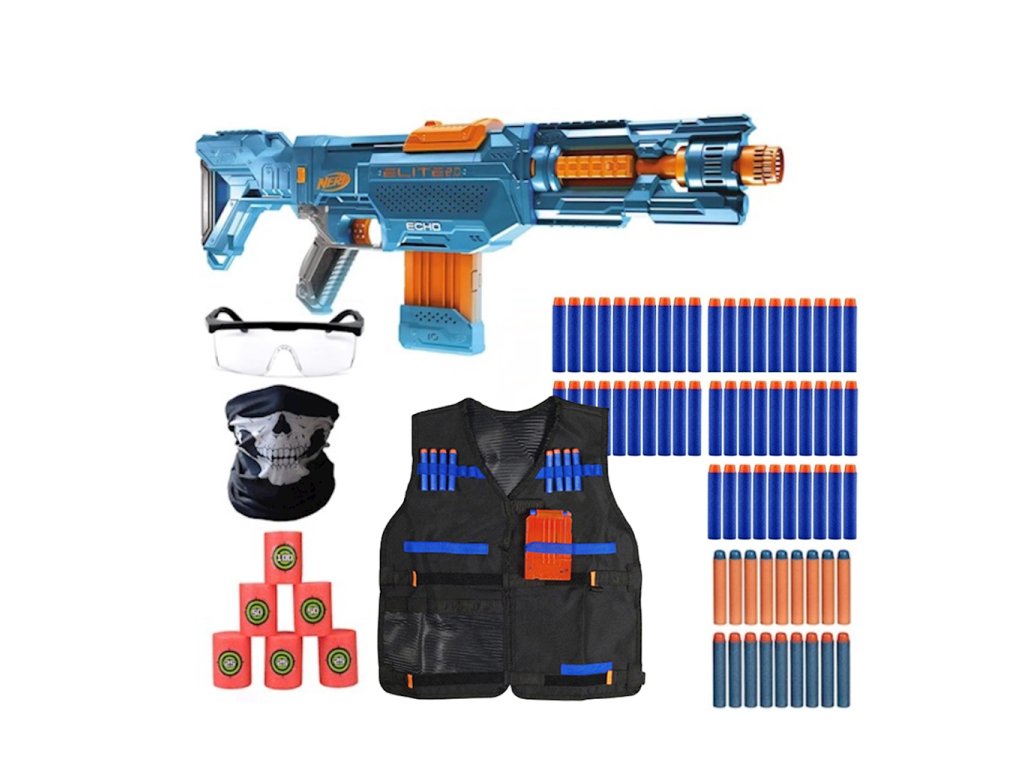 Nerf Elite 2.0 Echo CS-10 E9533 + brýle + šátek + vesta + terče + 50 šípů Waffle