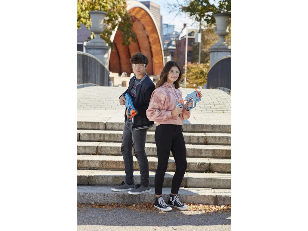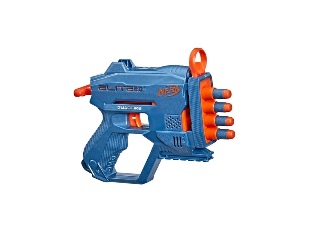 • Zbraň Nerf Elite 2.0 QUADFIRE QS-4 - je jednoranný odpalovač s vertikální sadou čtyř šipkových hlavně, podobný Alpha Strike Fang QS-4. Má velký optický zaměřovač nad hlavní a jedinou taktickou lištu pod hlavní. Odpalovací zařízení má závěsný montážní bod na rukojeti. Můžete vystřelit 4 šipky za sebou.