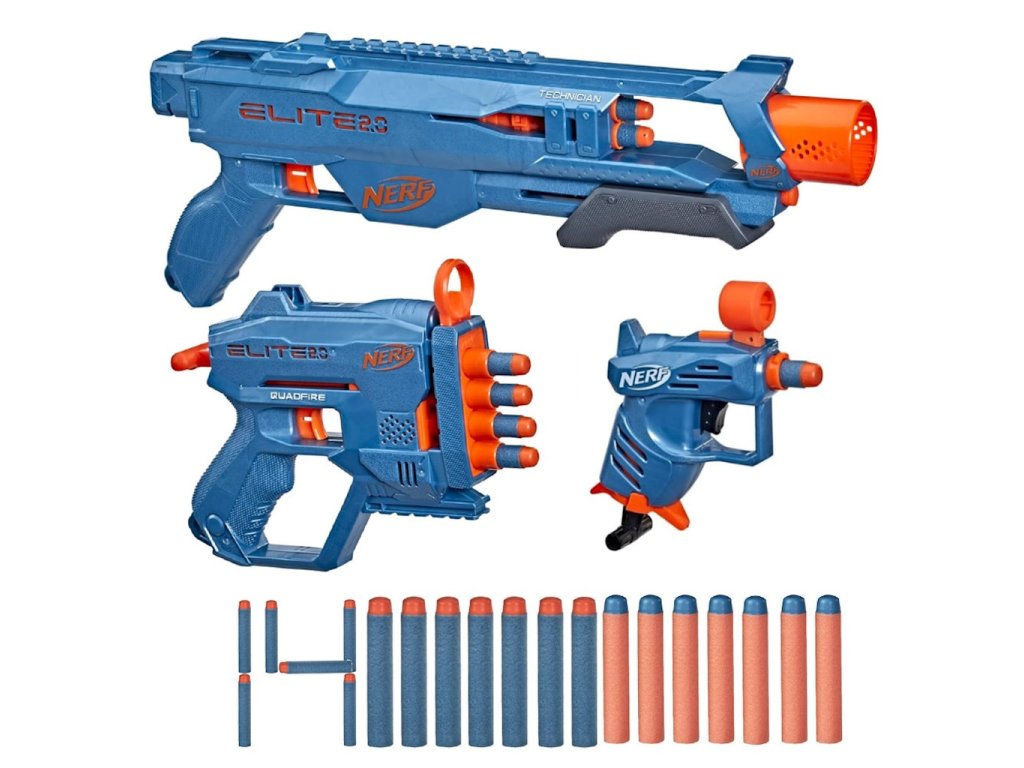 Nerf Elite 2.0 LoaoutPack 3Pack Technician DS-2, QuadFire QS-4 a Ace SD-1 + 14 šipek F4178, Quadfire QS-4 a Ace Sd-1. Tato sada nerf obsahuje 14 šipek Nerf Elite, které stačí k nabití všech 3 blasterů, a náhradní šipky k nabití všech zbraní. Rozšiřte svou sbírku Nerf pomocí Loadout Set! Toto je skvělý dárek, který vám umožní zúčastnit se bitev Nerf hned po vybalení z krabice