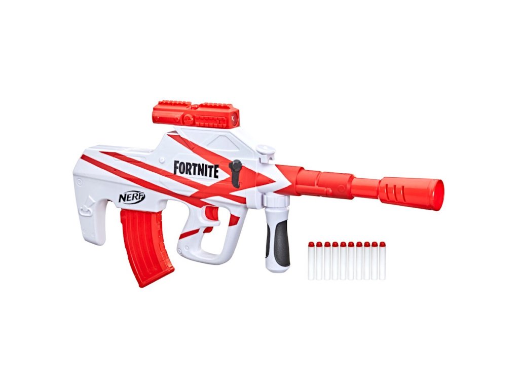 NERF Fortnite B-AR AUG vychází z vrhače z neuvěřitelně populární hry Fortnite. Jedná se o poloautomatický vrhač, který je napájen 4 bateriemi C, takže z něj během chvilky vystřílíme celý zásobník na 10 ran. Stačí vypustit motory a stisknout spoušť, abyste vystřelili. Na horní straně odpalovače jsou mířidla a na zaměřovači 3 taktické lišty, na které můžeme připevnit příslušenství. Uchopte odpalovač a přeneste se ze hry do reálného světa!Funkce odpalovacího zařízení: