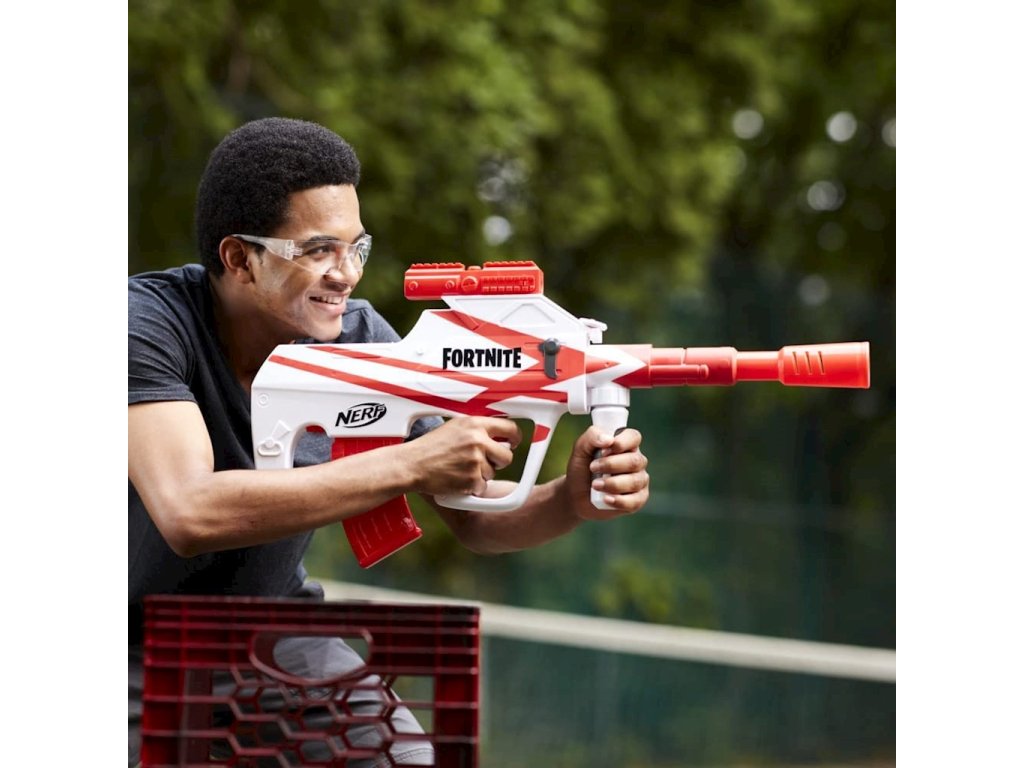 NERF Fortnite B-AR AUG vychází z vrhače z neuvěřitelně populární hry Fortnite. Jedná se o poloautomatický vrhač, který je napájen 4 bateriemi C, takže z něj během chvilky vystřílíme celý zásobník na 10 ran. Stačí vypustit motory a stisknout spoušť, abyste vystřelili. Na horní straně odpalovače jsou mířidla a na zaměřovači 3 taktické lišty, na které můžeme připevnit příslušenství. Uchopte odpalovač a přeneste se ze hry do reálného světa!Funkce odpalovacího zařízení: - Odpalovací zařízení je určeno pro střelbu ze zbraně, která se používá při střelbě na cíl: