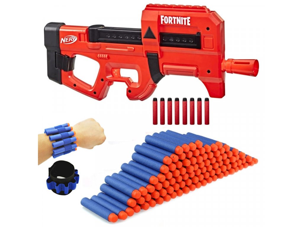 Fanoušci hry Fortnite si nyní mohou její hraní přenést do reálného světa. To vše díky pistoli NERF Fortnite Compact SMG, která byla inspirována populární počítačovou hrou Fortnite. Nerf Fortnite Compact SMG je poloautomatický vystřelovač, který je napájen čtyřmi AA bateriemi. Vystřelovač má zabudovaný zásobník na 8 šípů. Je poloautomatický, což znamená, že jej nemusíte nabíjet, abyste vystřelili. Nerf má dvě spouště, jedna odjišťuje odpalovač a druhá vystřeluje šíp. Vystřelovač vystřelí šípy na více než 20 metrů a můžeme z něj střílet tak rychle, jak rychle dokážeme stisknout spoušť. Kompaktní zbraň SMG je zbarvena do červena, což ještě více odlišuje její vzhled.Jedinečné vlastnosti sady: