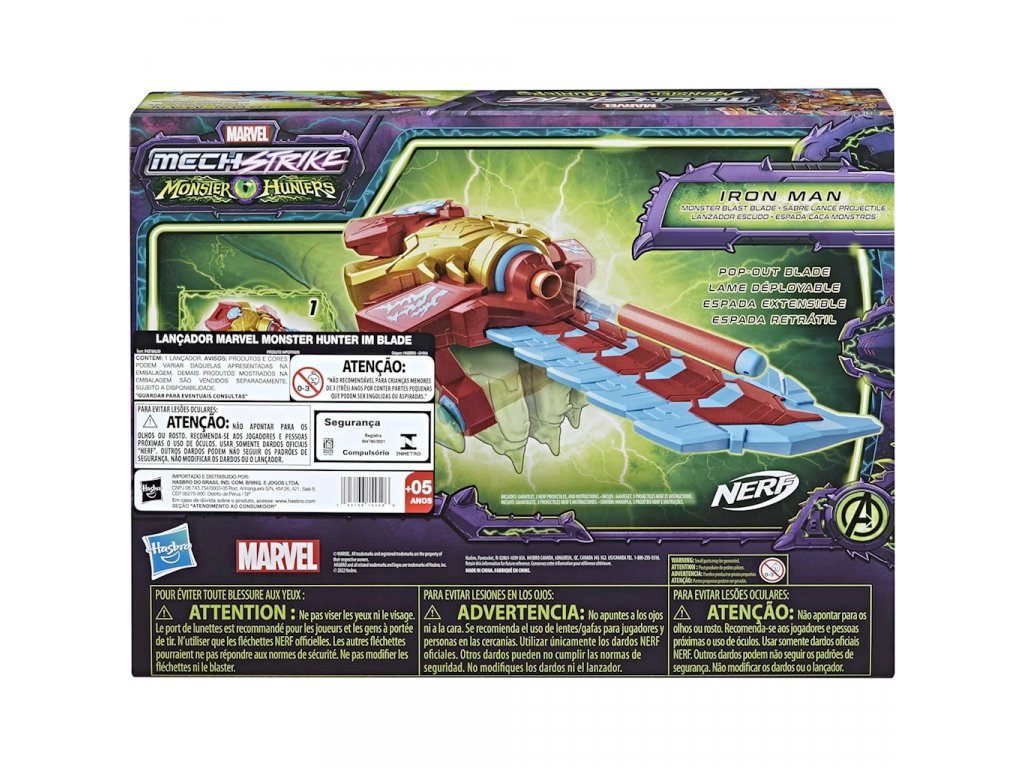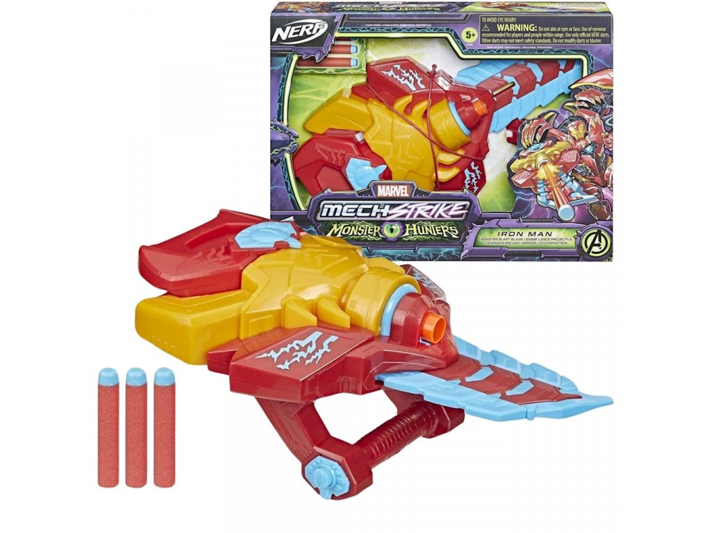 Iron Man se připravuje na bitvu v obrovském bioorganickém mechu, připraven čelit mocným padouchům. Vyzbrojen čelí nebezpečí, připraven bránit svět před veškerým zlem. Vžij se do role prvního Avengera a doprovázej ho při neobyčejných dobrodružstvích s tímto vystřelovačem. Po zatažení za oko příšery se aktivují výsuvné čepele - jsou připraveny k akci. Zaměř se na cíl a stisknutím tlačítka na rukojeti vystřel šíp Nerf Elite.