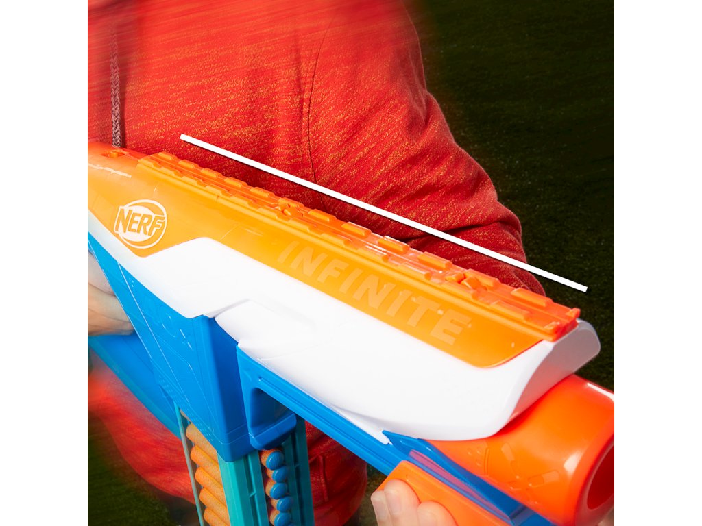 • Nerf N Series Infinite má rychlé nabíjení díky pumpě a bojovému opasku,