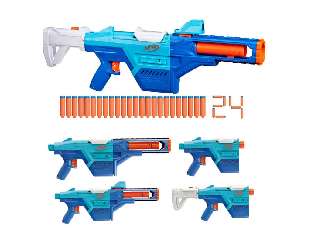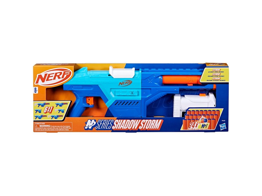 Nerf N Series Shadow Storm F8635Nerf N Series Shadow Storm je multifunkční blaster v jedinečném barevném schématu, který lze přizpůsobit jakémukoli typu akce. Nerf zvyšuje úroveň vaší hry pomocí vysoce výkonných blasterů Nerf řady N a šipek Nerf N1. Shadow Storm střílí na vzdálenost asi 24 metrů a zásobník pojme 8 šipek řady N. Nejdůležitější vlastností launcheru je jeho modulární konstrukce, díky které vhodnými úpravami vytvoříme až 6 různých launcherů. Nerf má odnímatelnou pažbu, prodlouženou hlaveň, zaměřovač a taktickou lištu.
