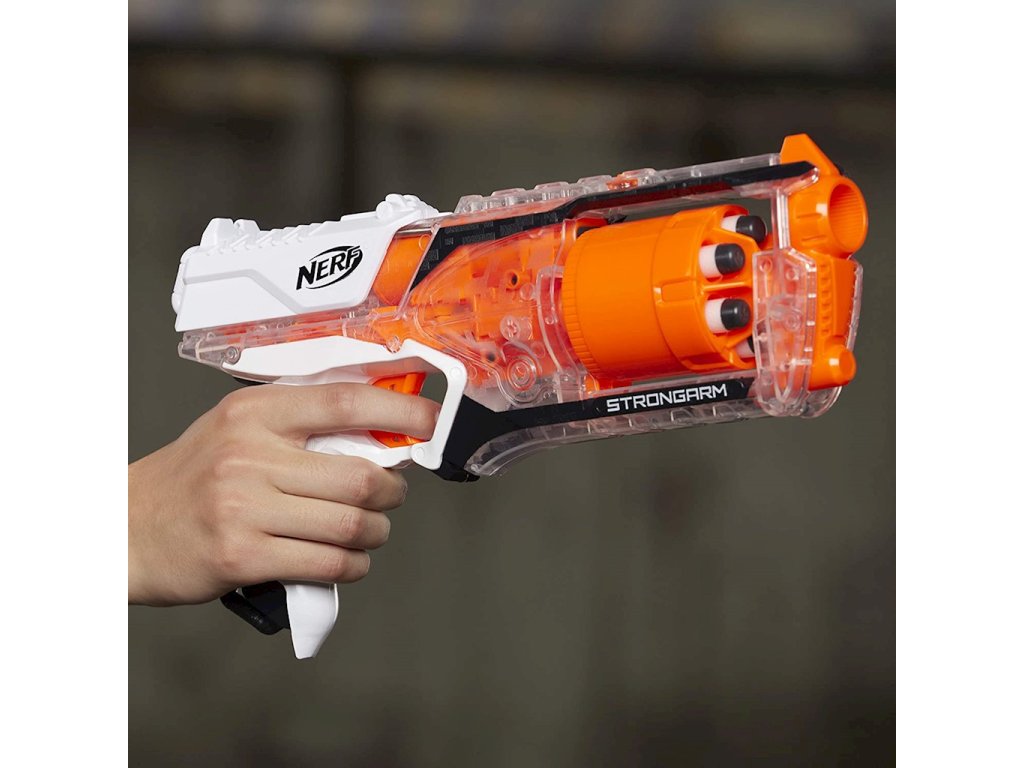 Oproti předchozímu modelu se zásobník v pistoli Strongarm otáčí velmi snadno. Díky novému systému nabíjení je vystřelovač méně náchylný k zasekávání šípů během hry. Zcela nové jsou také dva režimy střelby - jednoduchý a nepřetržitý. Strongarm je skvělou volbou jak na začátek dobrodružství s Nerfem, tak do vaší sbírky.