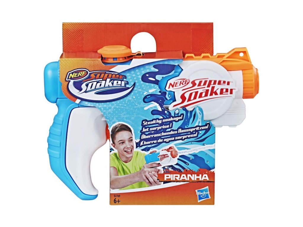 Nerf Super Soaker Piranha E2769 6 KSV horkých letních dnech není lepší zábava než vodní bitva. Namočte své soupeře touto kompaktní vodní pistolí, která se díky své velikosti snadno skladuje a má po ruce. Blaster Nerf Piranha pojme 177 ml vody. Je také velmi snadno ovladatelný, a to i pro ty nejmenší. Po naplnění blasteru stačí stisknout spoušť a někdo zmokne :D