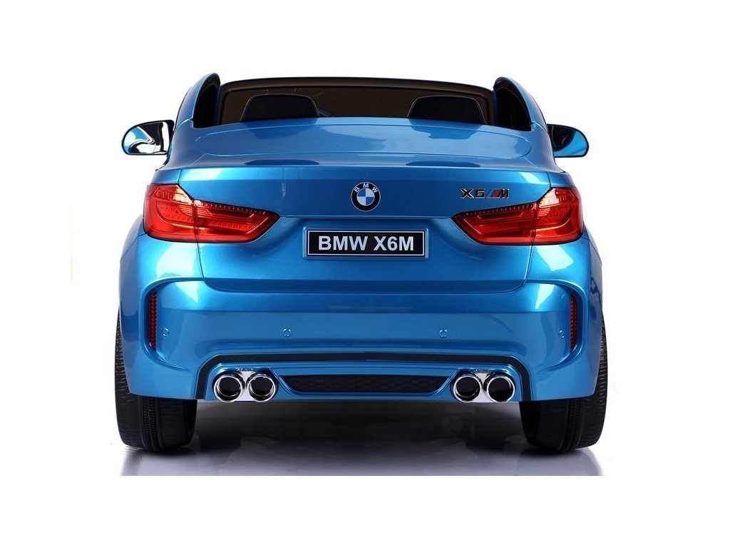Auto poháněné baterií BMW X6M připomíná verze určená pro dospělé . Masivní a pevná konstrukce v kombinaci s nejkvalitnějšími materiály zaručí vašemu dítěti skvělou zábavu na mnoho let. Tónované čelní sklo a originálně tvarovaná světla dodají vozu jedinečný charakter vysoké dveře s vnitřním zámkem zvýší bezpečnost dítěte cestujícího v autě. Tento model se vyznačuje smyslem pro nejmenší detail, designem typickým pro skupinu BMW a především vysokým komfortem používání a licencí značky.