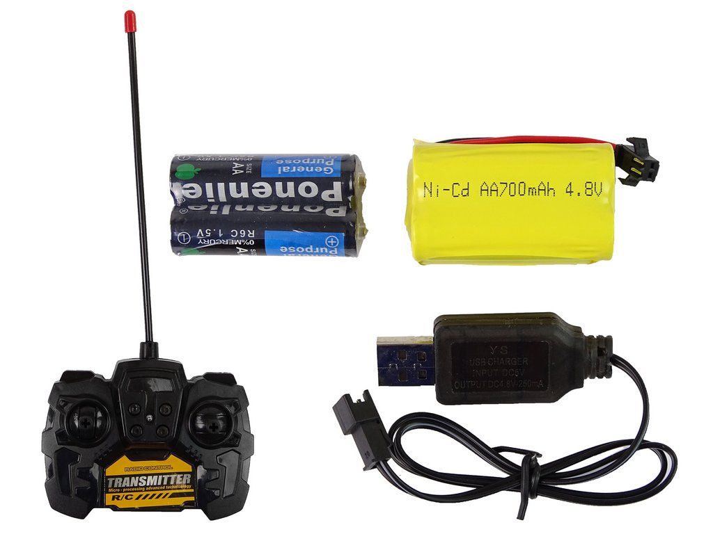 - Dálkově ovládaný jeřáb pomocí dálkového ovladače, který je součástí sady, vyrobený z plastu,