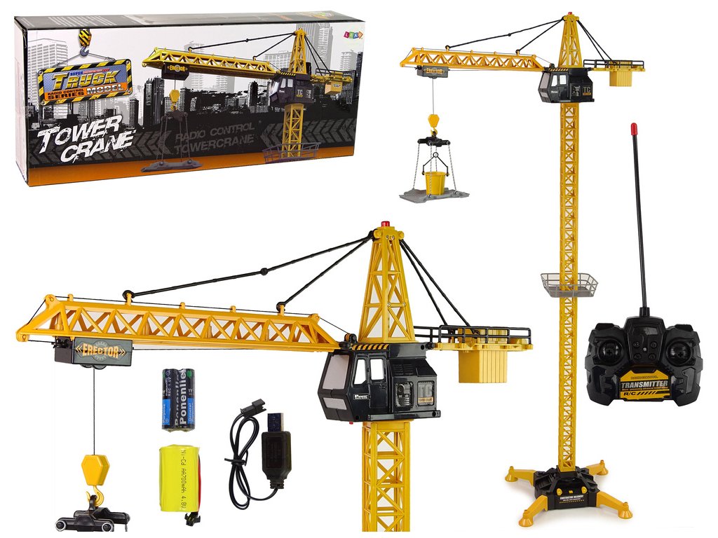 Břemena lze zvedat nahoru a dolů, portál jeřábu se pohybuje dopředu a dozadu a hlava se otáčí doprava a doleva. Hlavní část stroje je napájena dobíjecí baterií nabíjenou přes přiložený USB kabel. V ceně je i zboží na dopravu! Dokonale reprodukovaný a v provozu zajímavý stavební jeřáb umožní dětem skvělou zábavu. Jeho práce usnadňuje osvojení pravidel na stavbě.