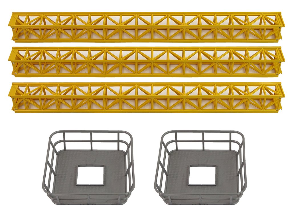 Výhodou jeřábu je, že se hák prodlužuje směrem dolů a nahoru volně táhne. Na konec háku lze zaháknout kbelík nebo plošinu, kterou můžete použít k přepravě menších předmětů z místa na místo. Dálkové ovládání 27 MHz umožňuje otáčení horní části jeřábu a spouštění lana za účelem přesunutí předmětů na místo. Poloha háku na rameni jeřábu se mění ručně.