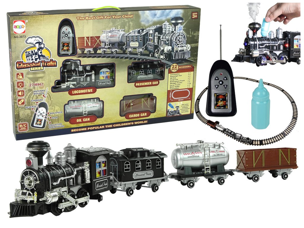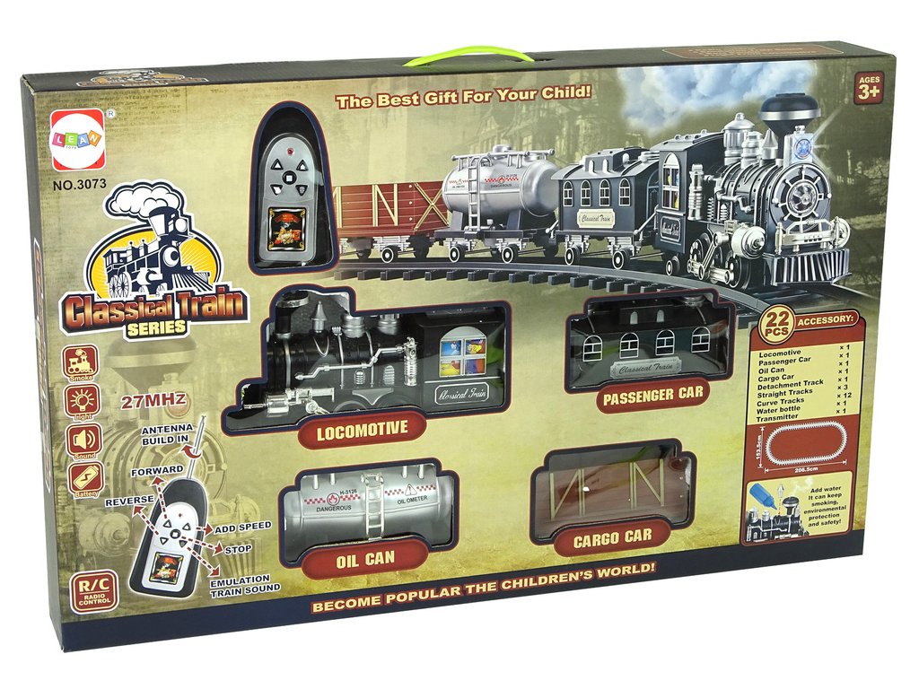 Lokomotiva stejně jako ostatní vagóny jsou dokonale reprodukovány s každým detailem. Vše lze ovládat pomocí 27 Mhz dálkového ovladače, který je součástí sady. Díky dálkovému ovládání můžete zvýšit rychlost, couvat, posunout vlak vpřed po kolejích a zapnout vlakové návěstidlo.