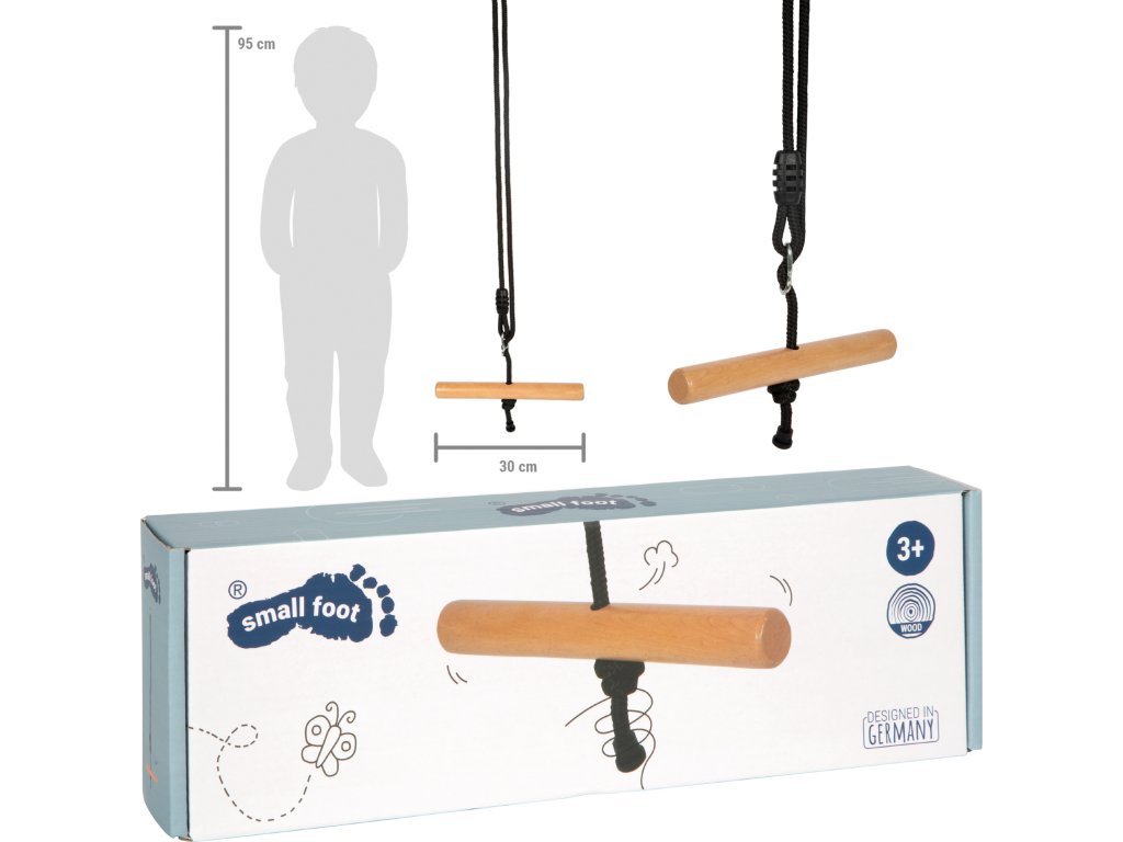 Tato houpačka je vyrobena zedřevaa je připevněna pomocísilných lan. Sedák je ve tvaru hrazdičky, díky které si děti mohou houpání naplno užít.