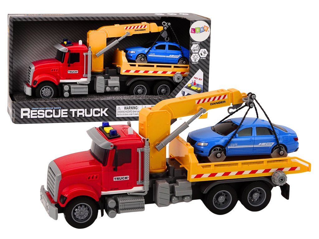 Červený odtahový vůz s jeřábem na autě je hračka, která děti zavede do fascinujícího světa dopravy a silniční pomoci. Realistický vzhled vozidel dodává zábavě další rozměr a dává dětem možnost přehrávat si různé scénáře a dobrodružství.