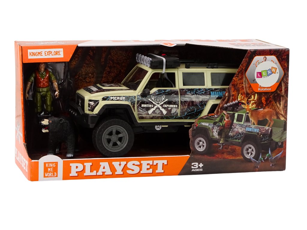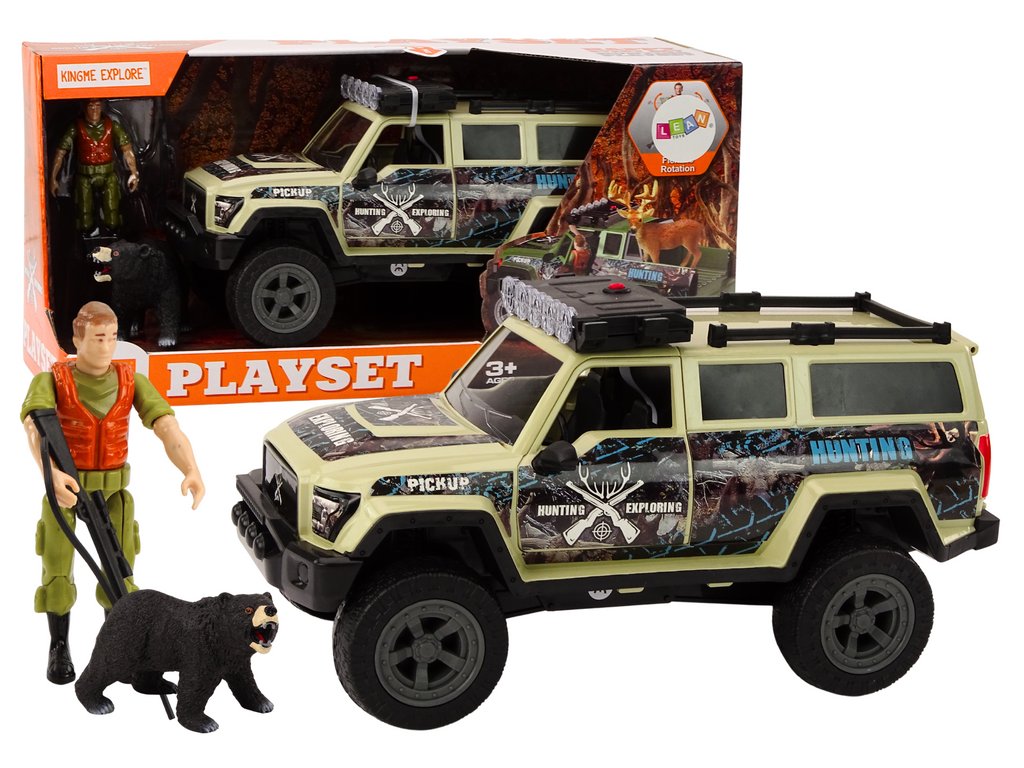 Sada obsahuje také figurku lovce vybavenou zbraní a figurku medvěda. Tyto doplňkové prvky umožňují dětem ztvárnit různé lovecké scény a rozvíjet tak jejich fantazii a kreativitu. Mohou napodobovat různé situace, jako jsou výlety do divočiny, setkání s divokými zvířaty nebo záchranné akce.