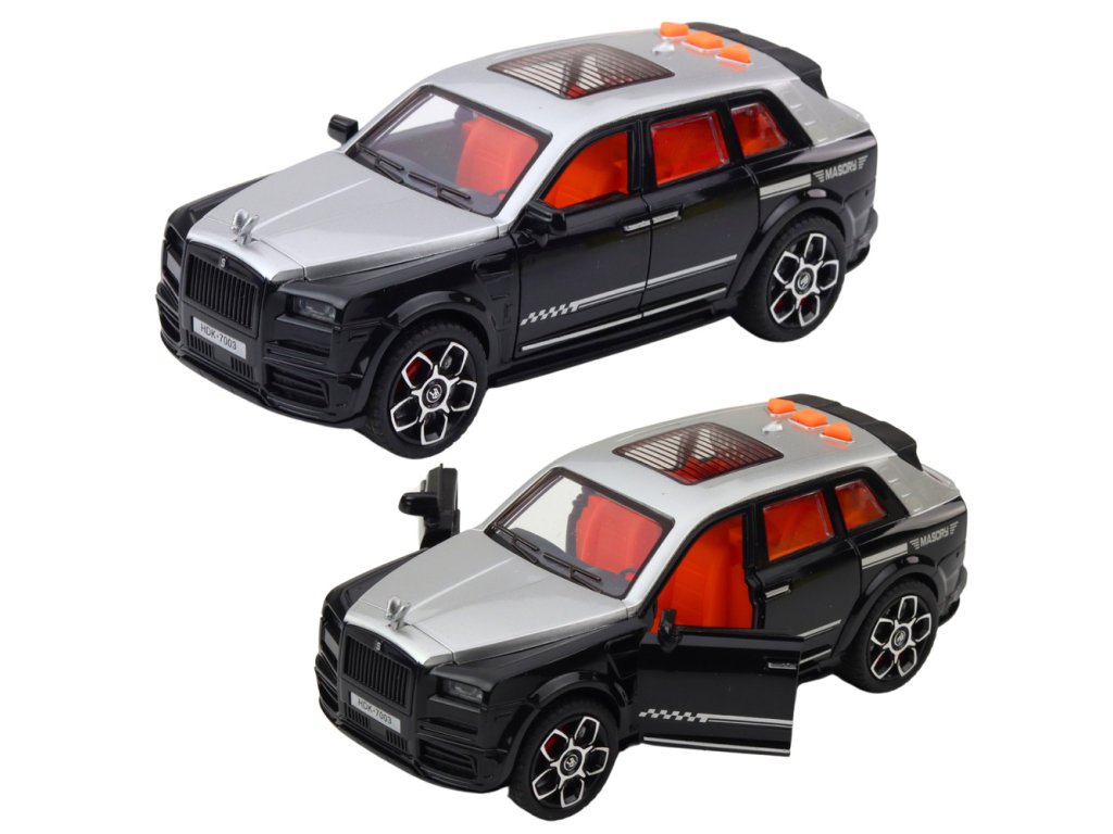Model je vyroben z odolných, bezpečných materiálů a věrně reprodukuje vzhled luxusního SUV. Díky pohonu zadních kol stačí auto lehce zatlačit, aby se samo rozjelo vpřed. To povzbuzuje dítě k aktivní účasti a vytváření vlastních herních scénářů.