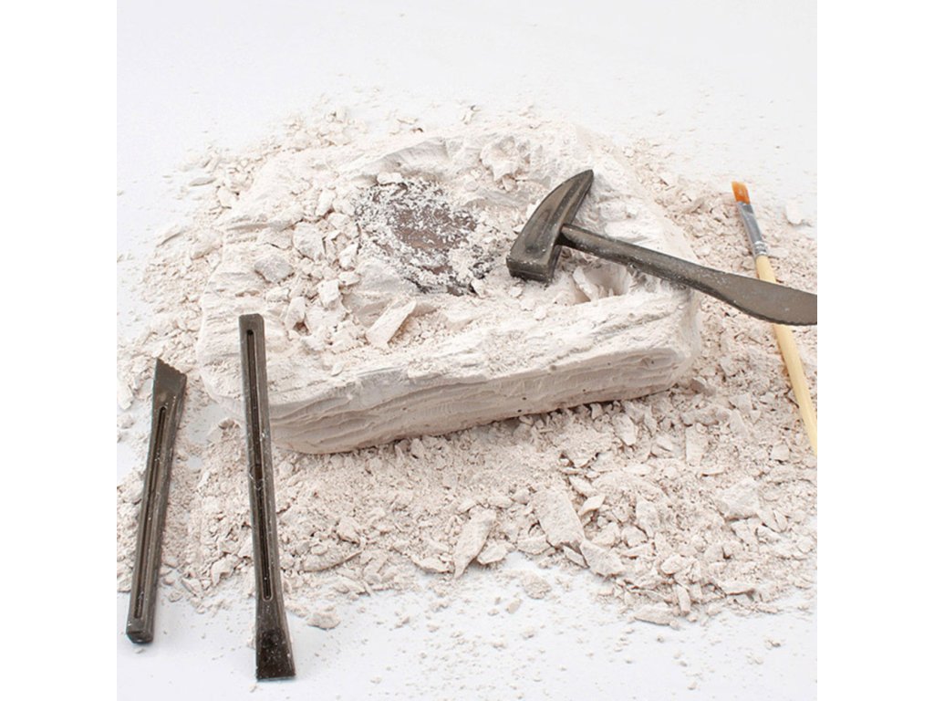 Navlhčete sádrový blok a poté opatrně vyjměte skrytý "artefakt" pomocí přiloženého nářadí – dláta, kladiva a štětců. Proces vykopávek rozvíjí soustředění, trpělivost, přesnost a manuální zručnost. Tato sada je ideální jako úvod do světa archeologie a geologie, učí děti trpělivosti a základním principům vykopávek.